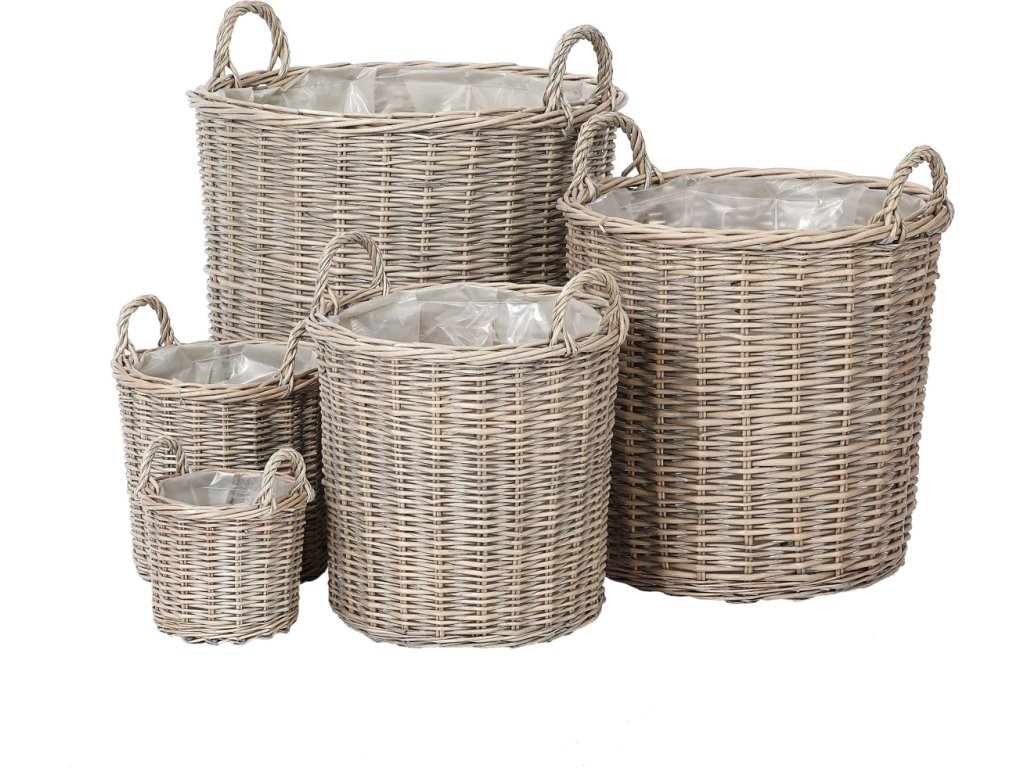 Proutěný koš s kruhovým půdorysem v přírodní našedivělé barvě představuje skvělou variantu obalu pro vaše květiny. Nabízíme vám je v sadě pěti různých velikostí, tak abyste mohli vybrat tu správnou míru pro vaší vybranou rostlinu. Materiál z proutí dodává do interiéru příjemný a rustikální vzhled, který navodí útulnější a atmosféru. Tento koš je především estetickým doplňkem, protože je celý pouze a jen z proutí. Proto je důležité, aby květiny v koši byly umístěny již ve svém obalu a nehrozilo prosakování vody.Doplňkové parametry