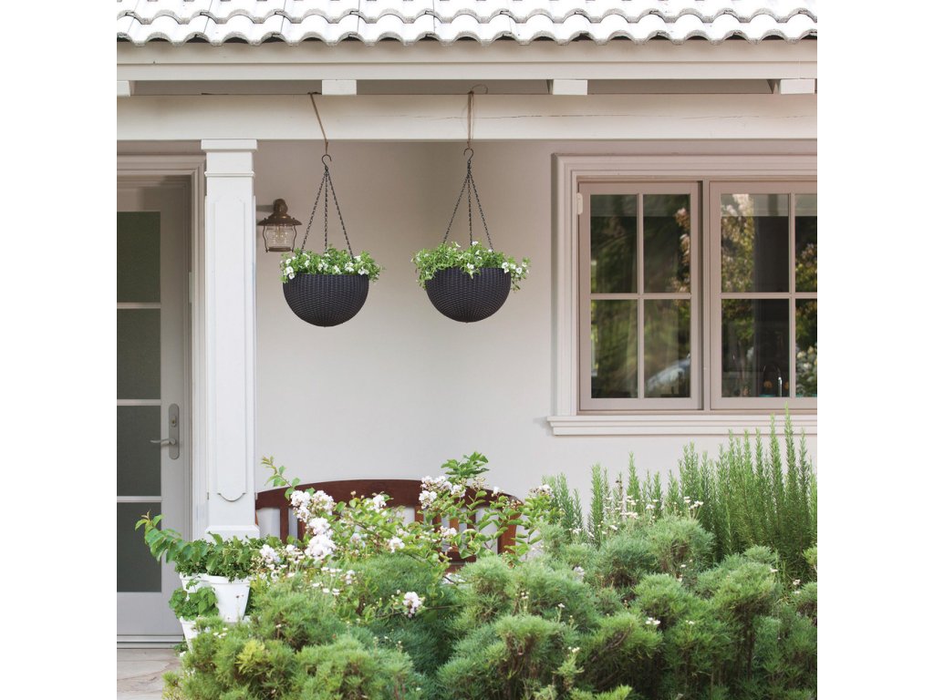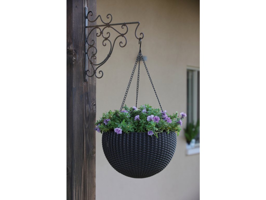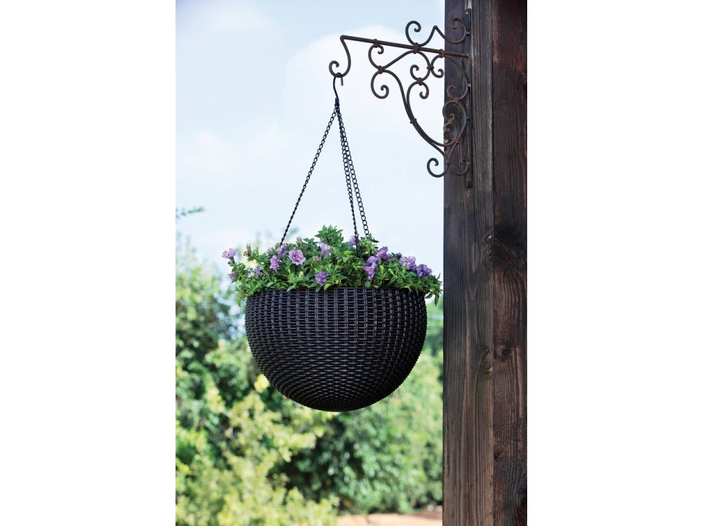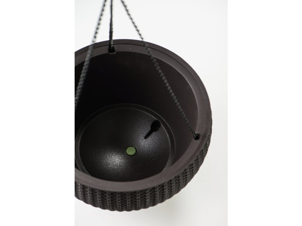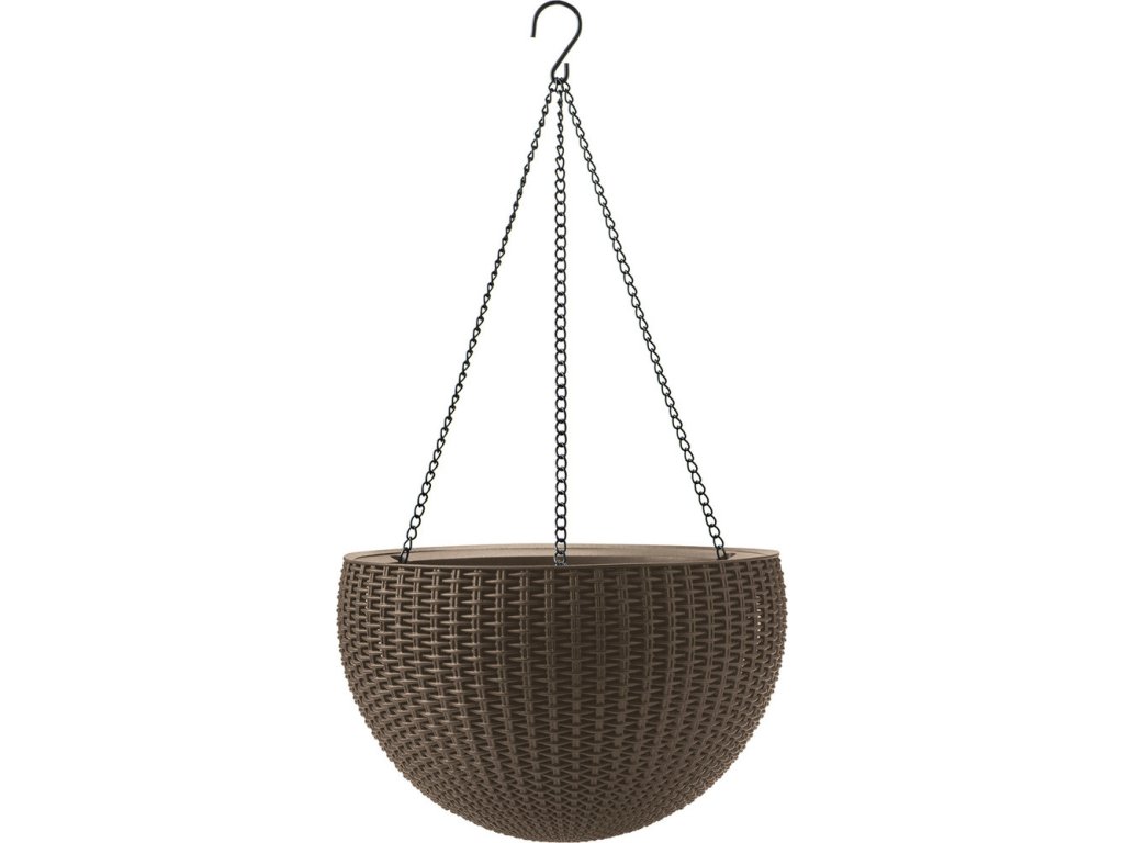 Květináč umělý ratan, hnědý (půl-koule) k zavěšení na verandu