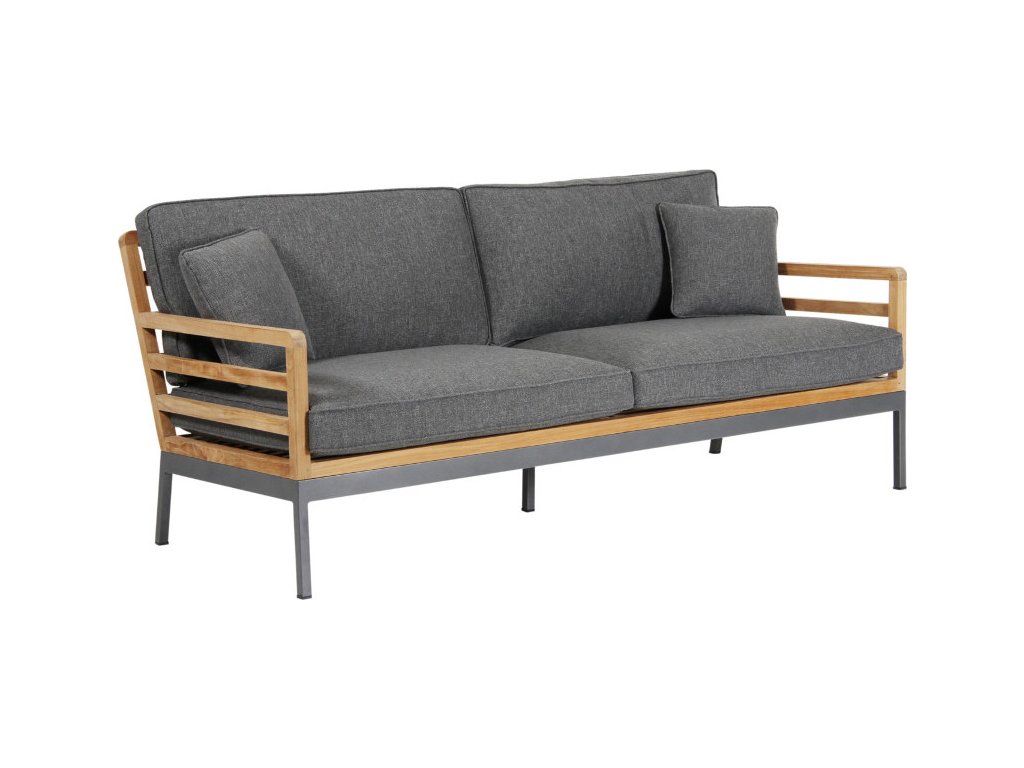 Elegantná pohovka Zalongo, ktorá kombinuje vysoko kvalitný teak s hliníkom v antracitovej farbe. Rovné teakové rebrá umocňujú dojem kvality a zároveň elegancie. Dva vankúše a spodný sedák sú súčasťou pohovky.Materiál: hliníkový rám a prémiové teakové drevoFarba rámu: antracitRozmery:šírka: 194 cm hĺbka: 80 cm výška: 81 cm Hmotnosť: 30 kgPríďte si ho vyskúšaťVystavený na predajni