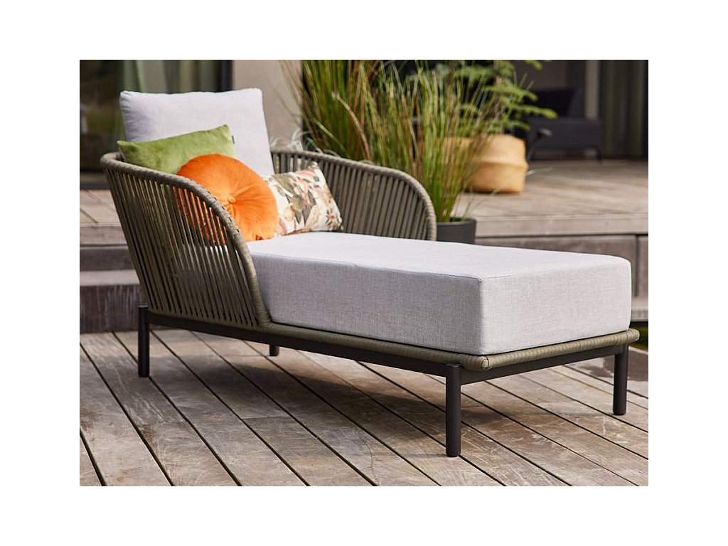 Arezzo je dizajnové, moderné záhradné ležadlo v čiernej farbe doplnené textilným polstrovaním v svetlej šedej farbe. Vďaka pevnej hliníkovej konštrukcii a výpletu zo syntetického povrazu je lehátko vhodné do exteriéru. Vysoké textilné polstrovanie zabezpečí maximálny komfort aj pri dlhšom sedení. Materiál: hliníkový ráma a syntetický povrazFarba: čierna so šedouRozmery:šírka: 165 cmhĺbka: 95 cmvýška: 57 cm Hmotnosť: 17 cm