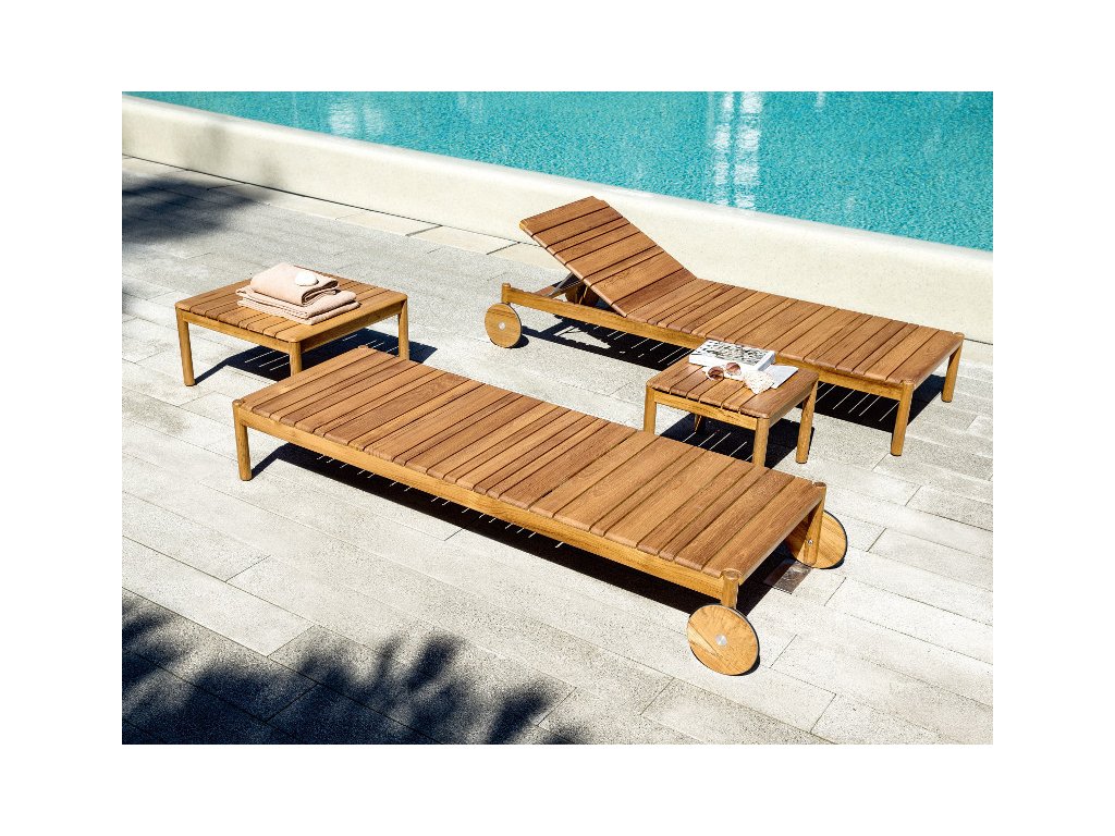 Luxusná kolekcia Barcode z certifikovaného teaku sa vyznačuje čistým a jednoduchým dizajnom; jeho dlaždice rôznych hĺbok vytvárajú nepravidelný efekt "čiarového kódu". Opierka je nastaviteľná v štyroch polohách. Jednoduché presúvanie po tráve alebo terase spoľahlivo zabezpečia veľké kolieska. Možnosť dokúpenia textilné čalúnenia z rôznych materiálov a farieb.Lehátko Barcode je vhodné na terasy rodinných domov alebo do wellnessu. Materiál: certifikované teakové drevoRozmery: 209 x 71 x 32 cm D/Š/VHmotnosť: 43 cmPríďte si ho vyskúšaťVystavený na predajni