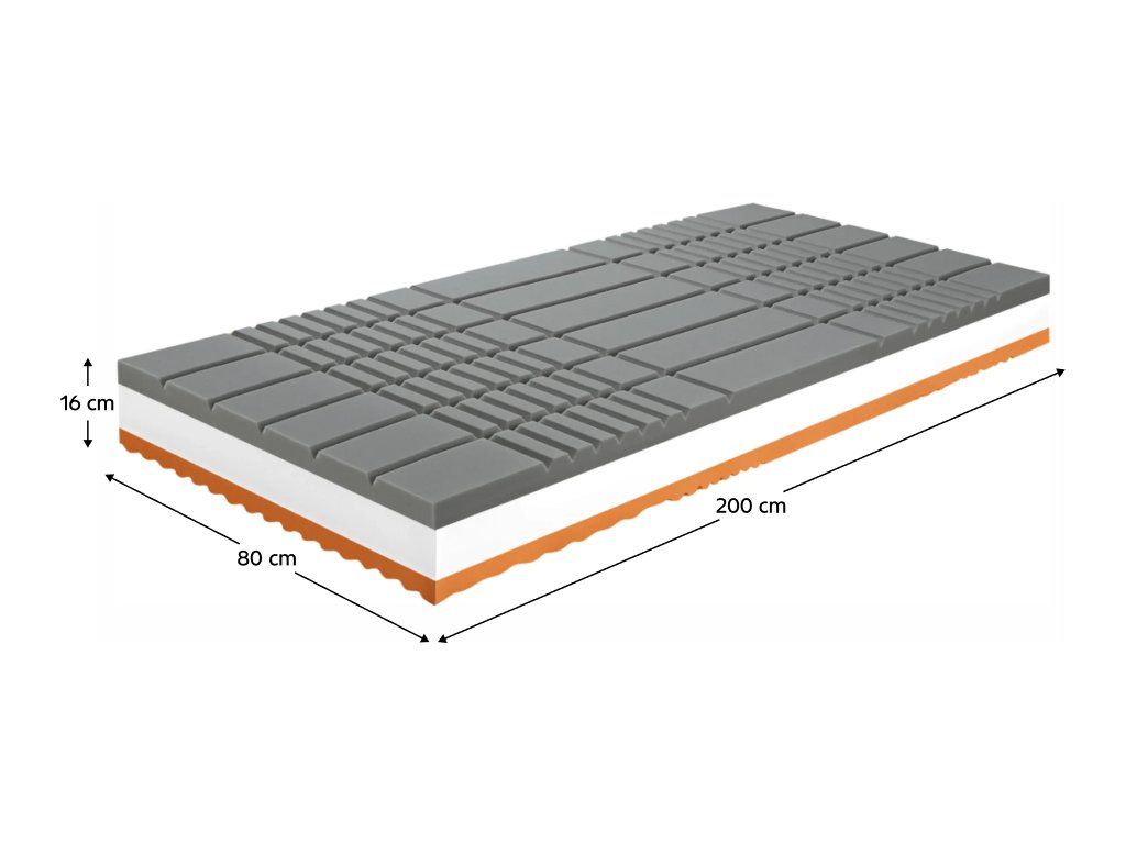 Materiál: PUR pěna Potah: sněhově bílý Rozměry (ŠxD): 80x200 cm Výška matrace: 16 cm Tvrdost matrace: středně tvrdý Nosnost: 110 kg Se sedmi zónami Prošitý klimatizační výplní PES dutým vláknem 200 gr / m2 zip antidekubitní sendvičový oboustranný Doporučený pro lamelový rošt Vyhotovený v potahu CHLOE AKTIV Potah s certifikátem OEKO-TEX STANDARD antibakteriální ANTIROZTOČOVÁ se zipem Praní při teplotě 60 ° C Barva pěny se může lišit Kvalitní slovenský výrobek.