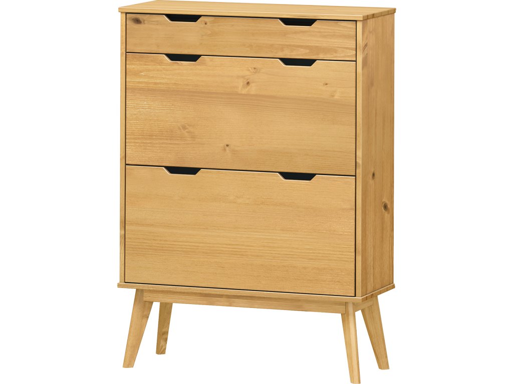 materiál masiv borovice voskovaná v medovém odstínu 1 zásuvka s kovovými pojezdy, 2 dvouřadé výklopy