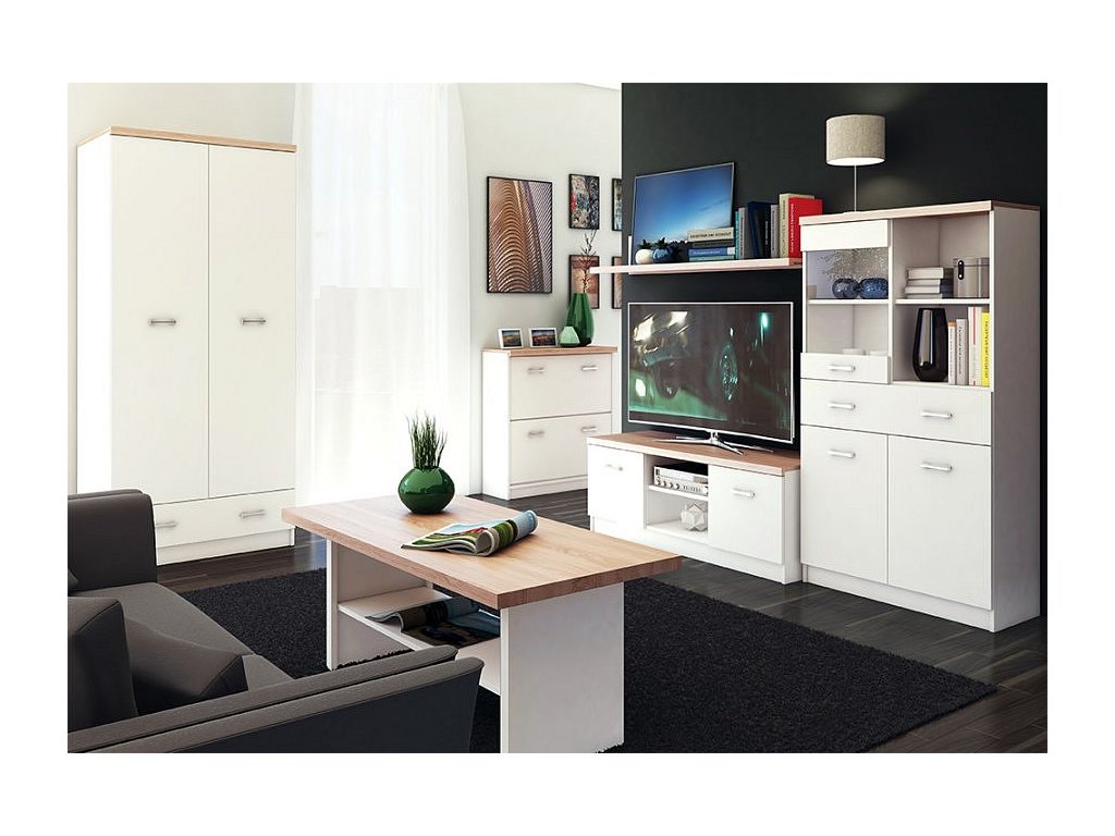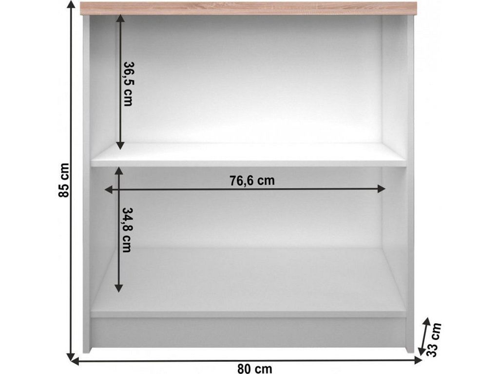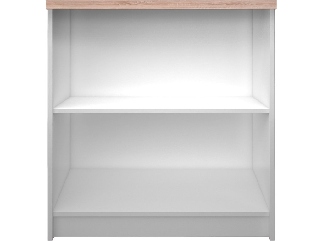 Regál nízký otevřený 80 ze sektorového systému TOPTY 16 Materiál: laminovaná DTD Barevné provedení: bílá / dub sonoma Rozměry (ŠxHxV): 80x33x85 cm Tloušťka materiálu korpus: 16 mm Tloušťka materiálu vrchní desky: 32 mm Dodávané v demontu.