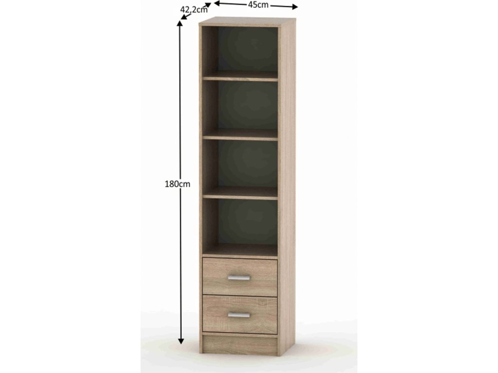Policový regál se šuplíky BETTY 4 Materiál: DTD laminovaná Barva: dub sonoma Rozměry (ŠxHxV): 45x42,2x180 cm Tloušťka lamina: 1,6 cm Dodávané v demontu.