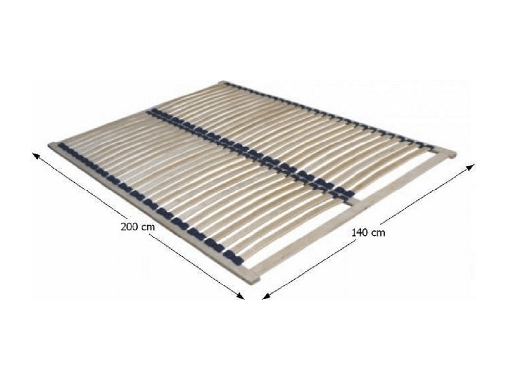 rošt, ohýbané lamely, březové dřevo, osazené v plastových pouzdrech na rámu roštu, ideálně se přizpůsobuje tvaru a hmotnosti těla, což poskytuje plný komfort spánku a garantuje zdravý odpočinek, doporučujeme do dvojlůžka, počet lamel: 28, se středovou dělící lištou, rozměry: 140x200 cm. Rošt není samonosný. Každý rošt je o 1 cm užší a 4 cm kratší od udaného rozměru. 90x200 = 89x196 cm.