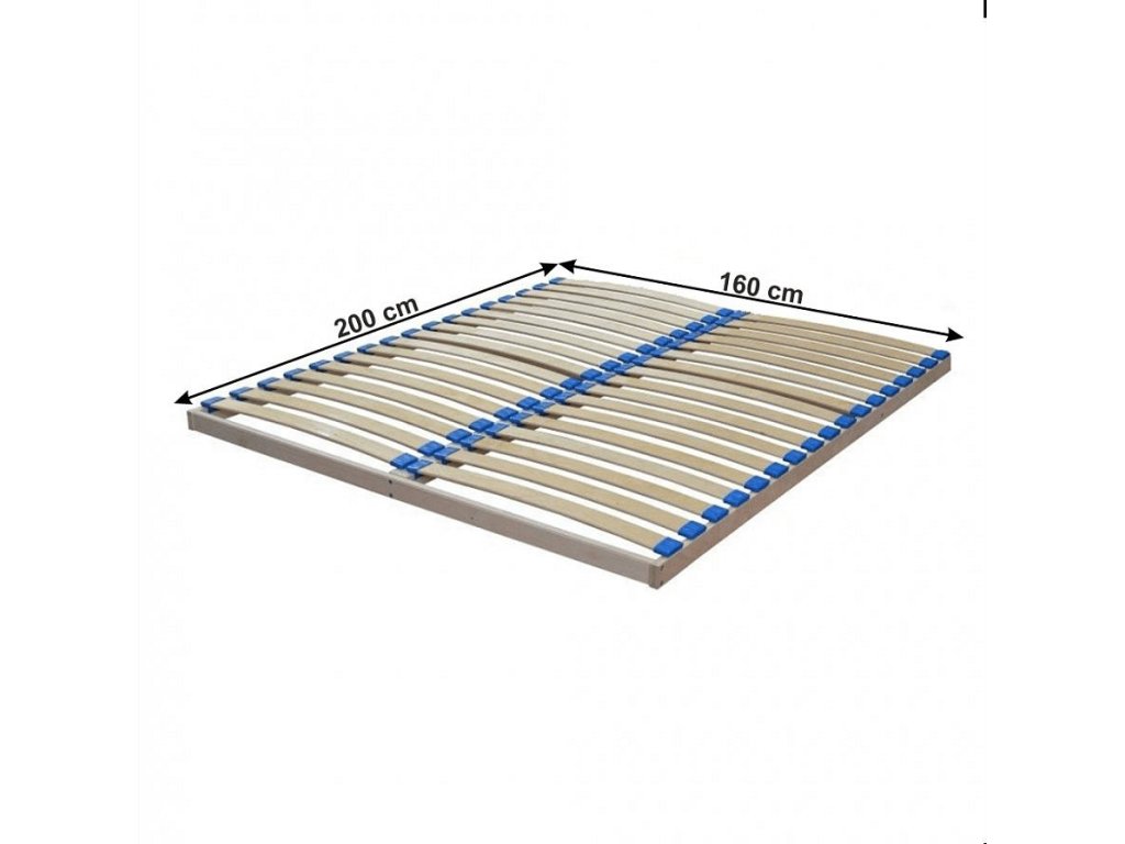 rošt Materiál: dřevo / plast Rozměr: (ŠxHxV): 160x200x8 cm Nosnost: 100 kg na jedno lůžko Lamely: ohýbané Počet lamel: 17 Pouzdra: plastové Rošt není samonosný Každý rošt je o 1 cm užší a 4 cm kratší od udaného rozměru. 90x200 = 89x196 cm.
