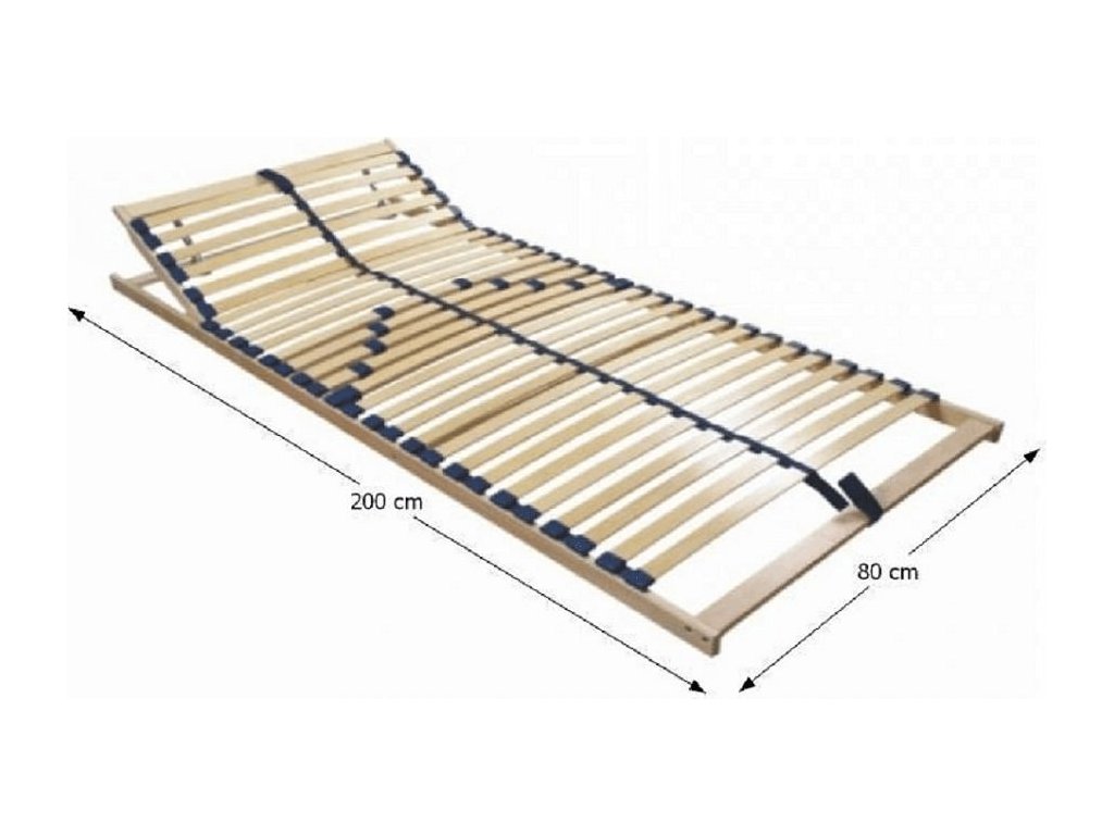 Materiál: lamely Barevné provedení: březové dřevo / plastové pouzdra Rozměry (ŠxV): 80x200 cm Počet lamel: 28 polohovatelný Osazené v gumových pouzdrech na rámu roštu Možnost nastavení tvrdosti střední části Mechanická regulace výšky záhlaví Vhodný pro pružinové / pěnové matrace Možné kombinovat s matracemi text / SUENO alergik Nosnost: max. 120 kg Rošt není samonosný. Dodávané v demontu Každý rošt je o 1 cm užší a 4 cm kratší od udaného rozměru. 90x200 = 89x196 cm.