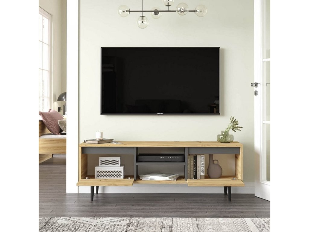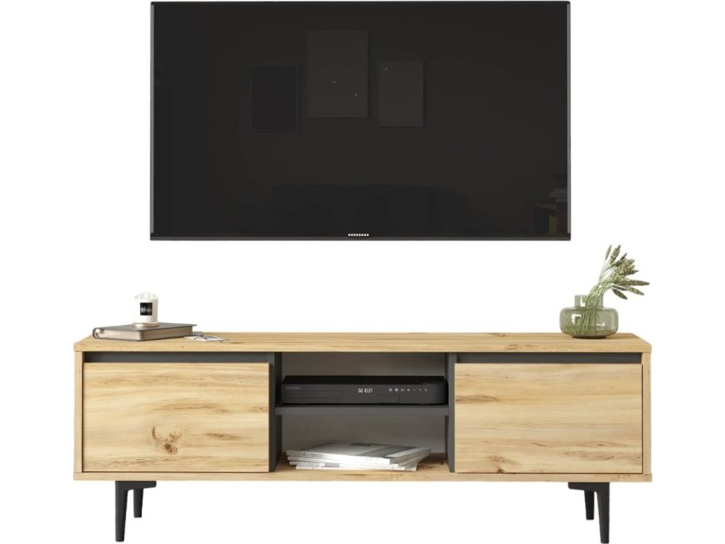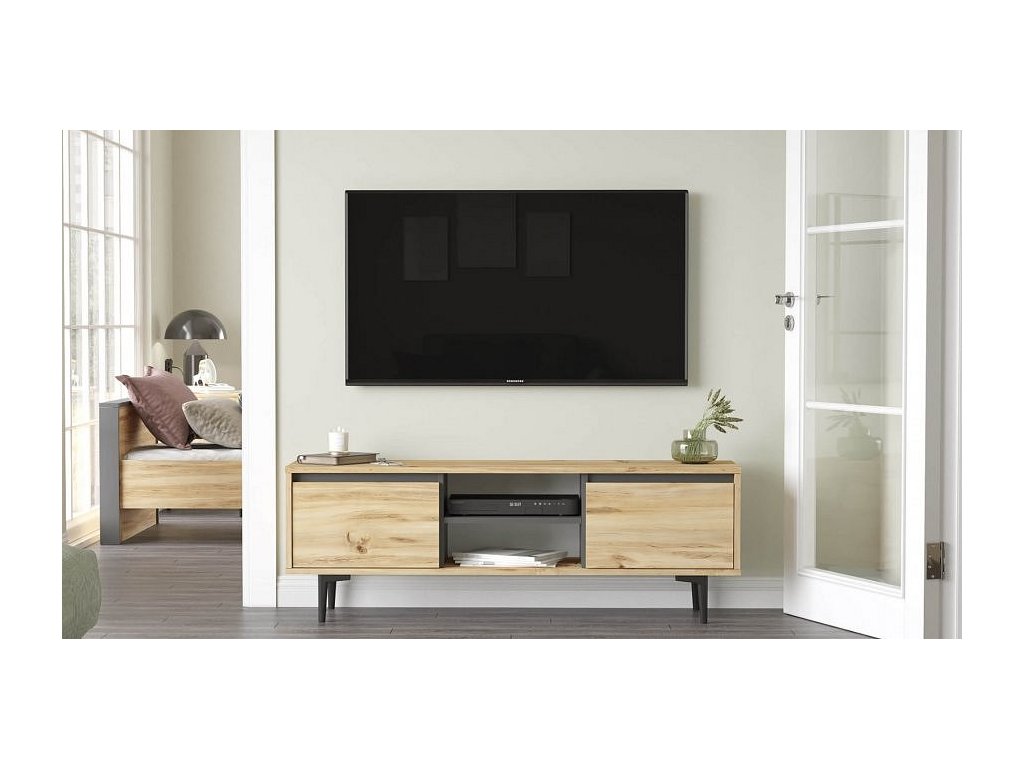 Představte si kombinaci retro designu a vintage stylu uprostřed vašeho obývacího pokoje, kanceláře nebo pracovny. Je to televizní stolek, který přináší tento zážitek přímo k vám domů. Dokonalý spojenec pro milovníky starých časů v moderním provedení.