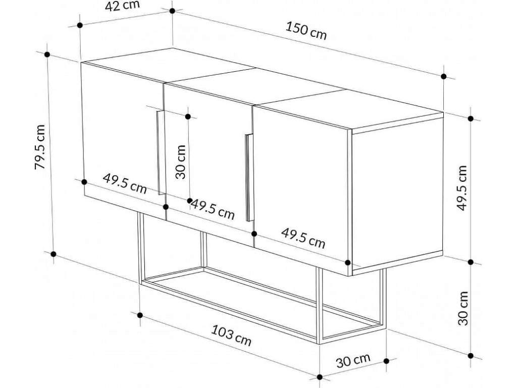 Rozměry: 79.5 x 150 x 44.5 cm - prostorný, ale zároveň kompaktní design.
