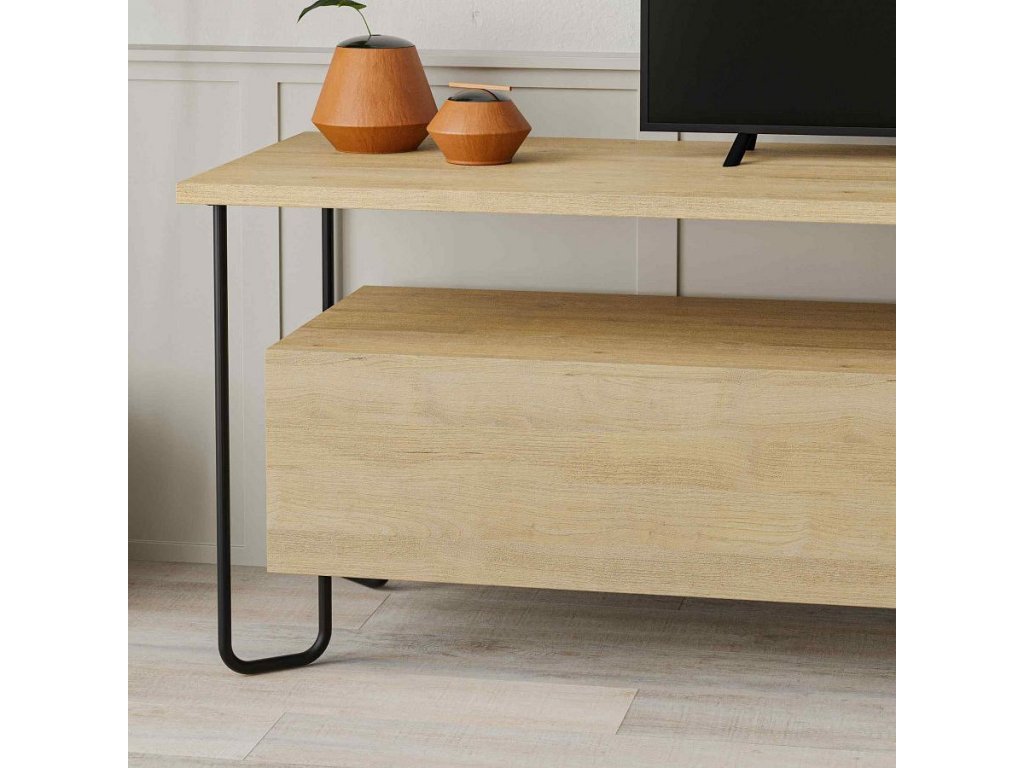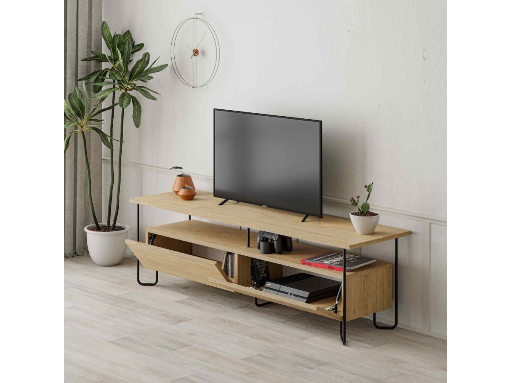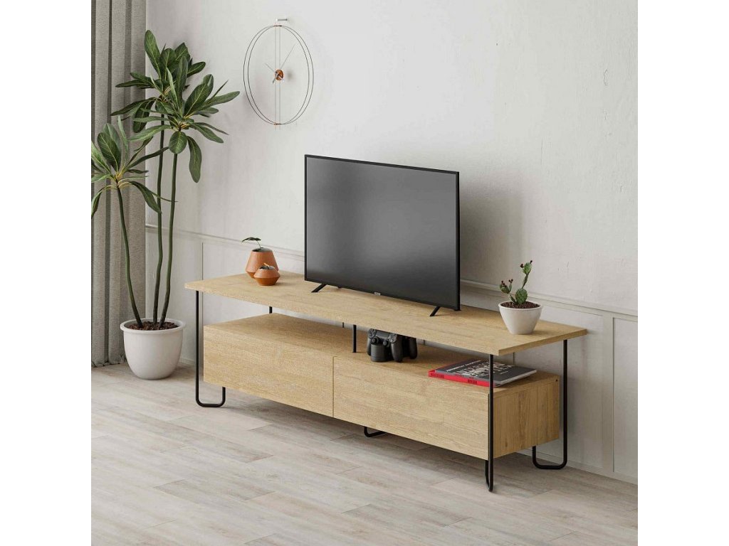 TV stolek: Moderní loftový styl v teplém dubovém provedení