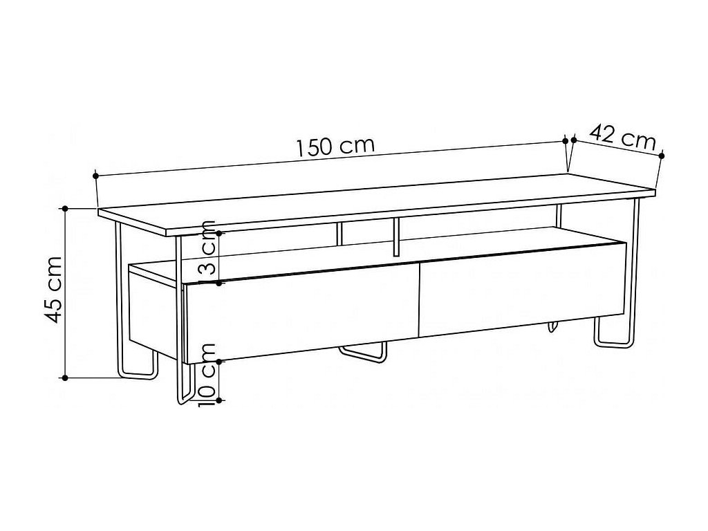 Rozměry: 45 x 150 x 42 cm – ideálně vyvážený rozměr, který poskytne dostatek prostoru pro všechny vaše zařízení a zároveň zaujme minimální místo v místnosti.