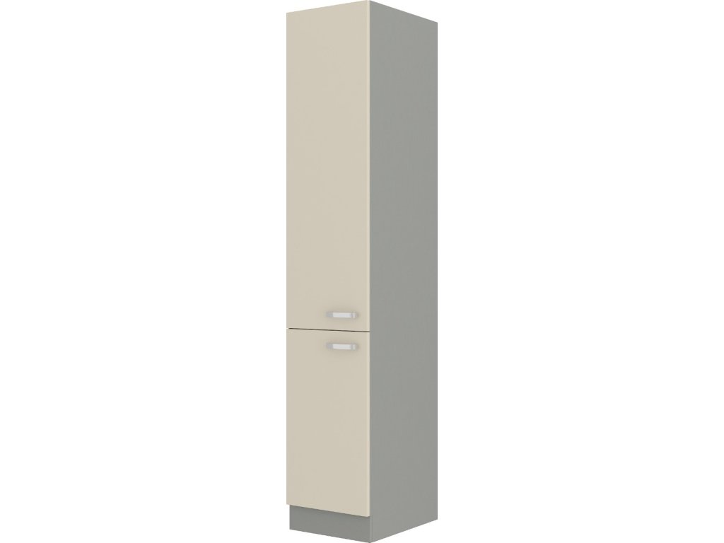 Potravinová skříň - spíže KARMEN vyrobená z kvalitního lamina a MDF. Korpus i sokl ( 10 cm ) jsou v barvě šedá a dvířka v barvě karmen krémová v lesku. Rozměry skříňky - šířka 40 cm, výška 210 cm, hloubka 57 cm. Skříň má levé otvírání dvířek. Úchyty jsou z kovu. V naší nabídce naleznete další výběr skříněk k sestavení celé kuchyně.Doplňkové parametry
