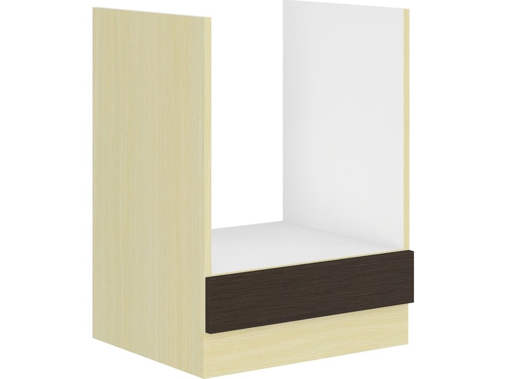 Dolní skříňka na vestavnou troubu CHAMONIX II vyrobená z kvalitního lamina. Korpus i sokl ( 10 cm ) jsou v barvě dub ferrara a dvířka v barvě dub tmavé legno. Rozměry skříňky - šířka 60 cm, výška 82 cm, hloubka 52 cm. Úchyty jsou z plastu. V naší nabídce naleznete další výběr skříněk k sestavení celé kuchyně.Doplňkové parametry