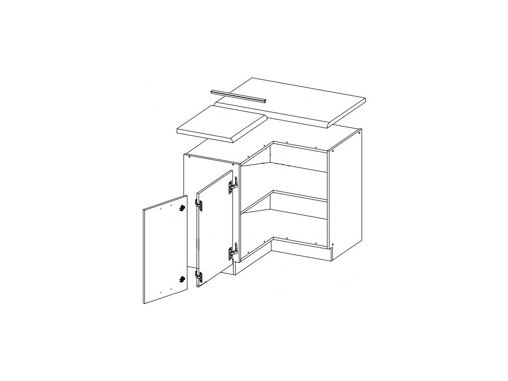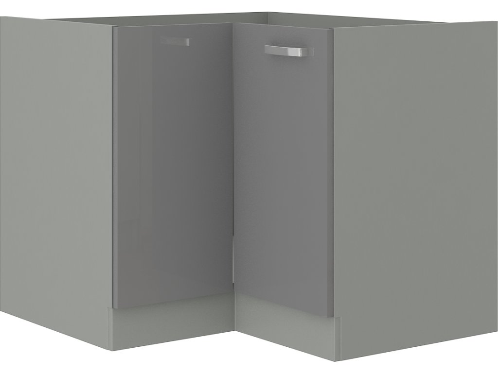 Dolní skříňka rohová GREY vyrobená z kvalitního lamina a MDF. Korpus i sokl ( 10 cm ) jsou v barvě šedá a dvířka v barvě grey šedá v lesku. Rozměry skříňky - šířka 83 x 83 cm, výška 82 cm, hloubka 52 cm. Pracovní deska není v ceně. Úchyty jsou z kovu. Dvířka mají levé otvírání. V naší nabídce naleznete další výběr skříněk k sestavení celé kuchyně.Doplňkové parametry