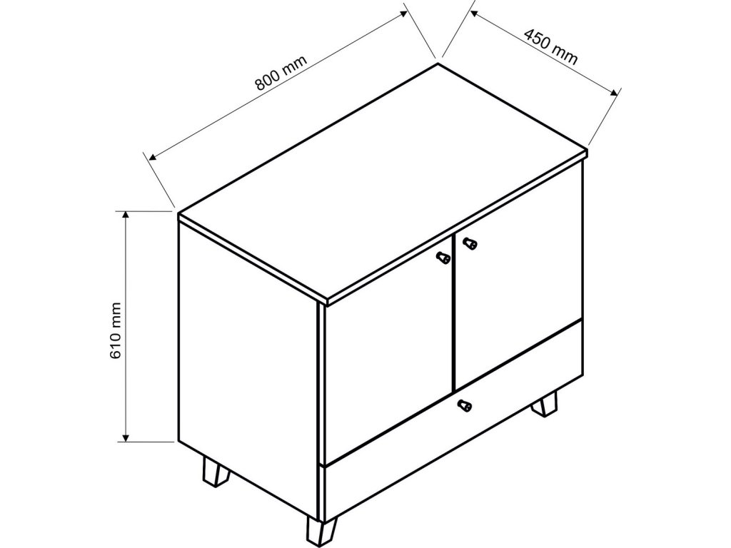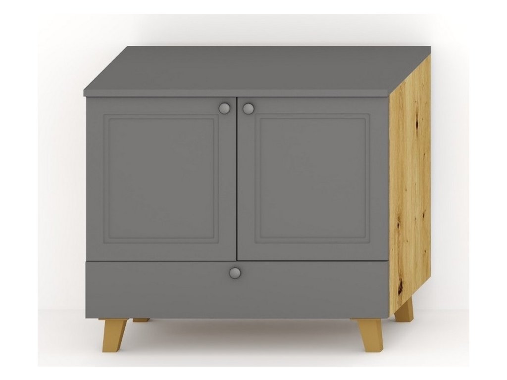 Spodní skříňka pod umyvadlo dvoudveřová se zásuvkou, včetně pracovní desky. Korpus je vyroben z desky LTD 16 mm potažené PVC folií v barvě dub artisan, dvířka a čela zásuvek jsou vyrobeny z lakované desky MDF tl. 19 mm - tmavě šedá. Úchyty jsou černá kulička. Skříňka stojí na nožkách, výška 15 cm. Celková výška skříňky je 75,9 cm. Dvířka jsou vybaveny systémem tichého dovírání. Dodáváme v demontovaném stavu. DOPRODEJ!Doplňkové parametry