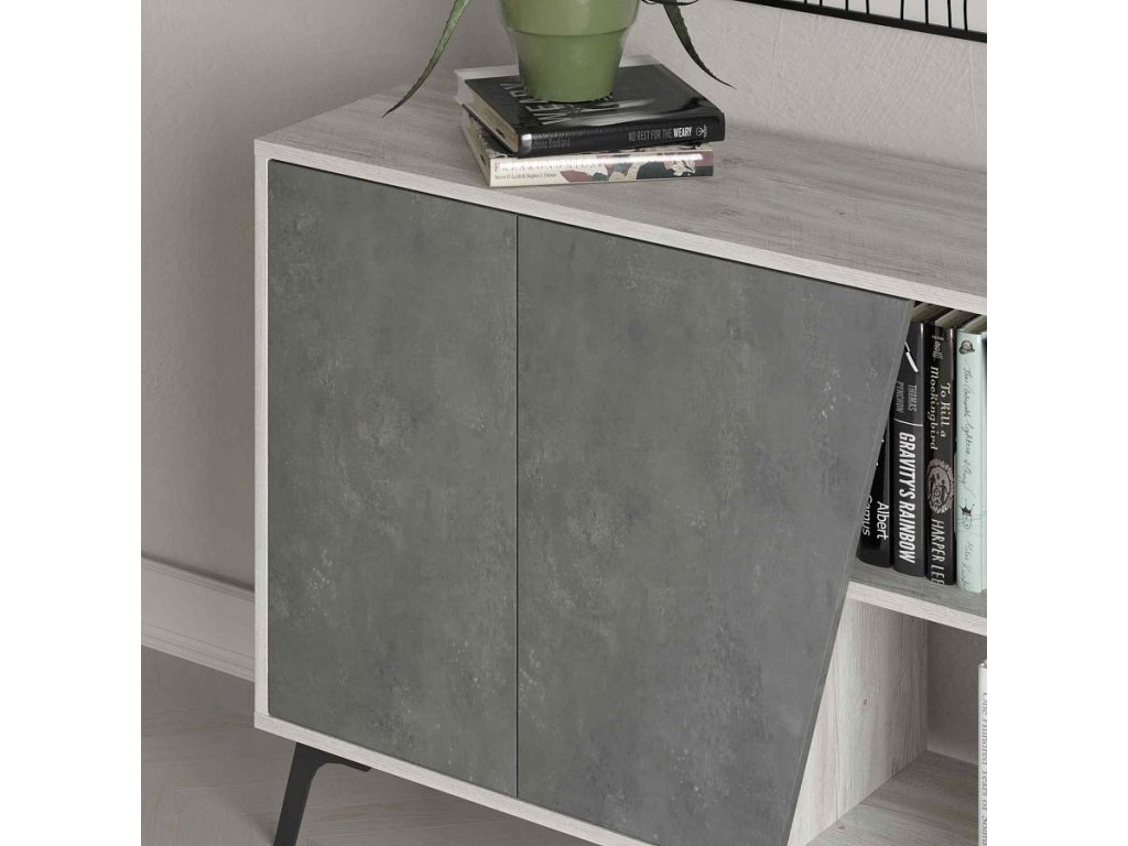 Stolek kombinuje nejen elegantní design, ale také funkčnost díky dvěma plným dvířkům. Lesklé kovové doplňky dodávají produktu luxusní vzhled, což zdůrazňuje jeho jedinečný charakter.