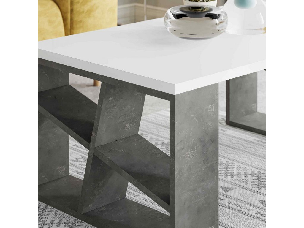 Setkáváte se s výzvou najít perfektní konferenční stolek pro váš obývací pokoj? S získáte ideální spojení stylu a funkčnosti. Jeho moderní a designové rysy v kombinaci s elegantními barvami bílá a šedá promění váš pokoj v esteticky dokonalý prostor.