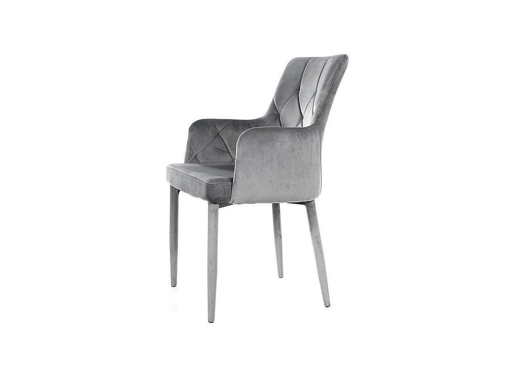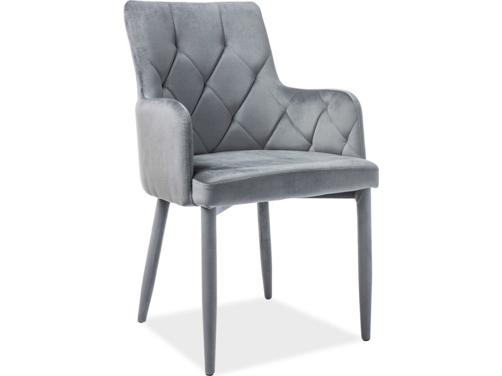 Atraktivní čalouněná židle - křeslo vhodná nejen do Vaší jídelny a kuchyně, ale také do kanceláře, čekárny či recepce. Čalounění je z látky aksamit v šedé barvě. Nohy jsou z kovu potaženy látkou stejnou jako je čalounění. Dodáváme v demontovaném stavu.Doplňkové parametry