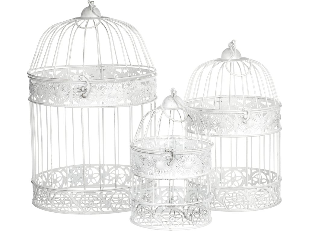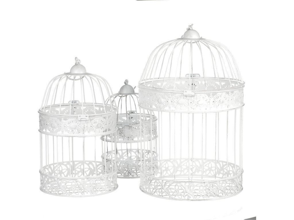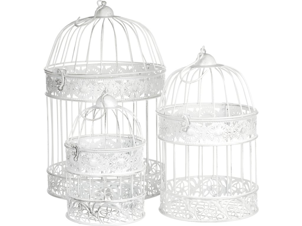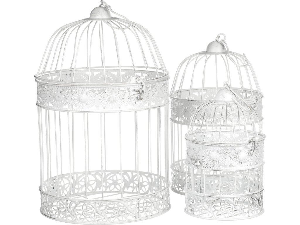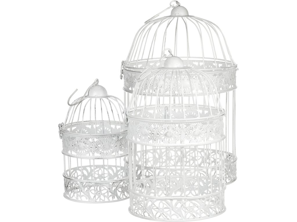Tato bílá kovová klec je jako prázdné nepopsané plátno, které vám umožní vyjádřit svou kreativitu. S háčkem na vrcholu konstrukce ji můžete snadno pověsit na místo určení. Využijete tím ideálně volného místa v prostoru. Do klece můžete vkládat libovolné ozdobné předměty, květinové přízdoby a další dekorace. Klec má elegantní vzhled, připomínající kopuli věže a má horní odklopnou část, která usnadňuje vkládání ozdobných věcí. Je k dispozici v sadě tří různých velikostí. Může ozdobit váš interiér po celý rok a přinést do něj unikátní stylovou dekoraci. Mimo to je vhodná i pro venkovní prostory, jako jsou altánky, pergoly a další zastřešená místa.Doplňkové parametry
