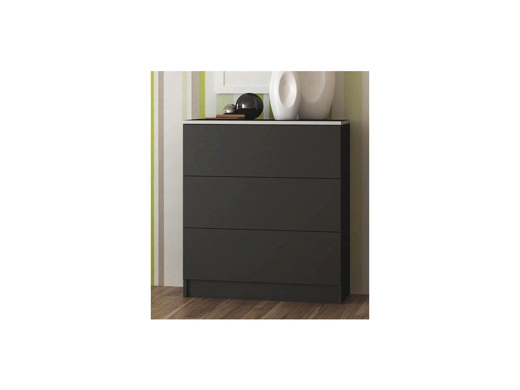 Komoda se 3 zásuvkami v moderním provedení. Korpus i dvířka jsou z kvalitního LTD v barvě černé mat, komoda obsahuje elegantní lišty v barvě aluminium. Dodáváme v demontovaném stavu.Doplňkové parametry