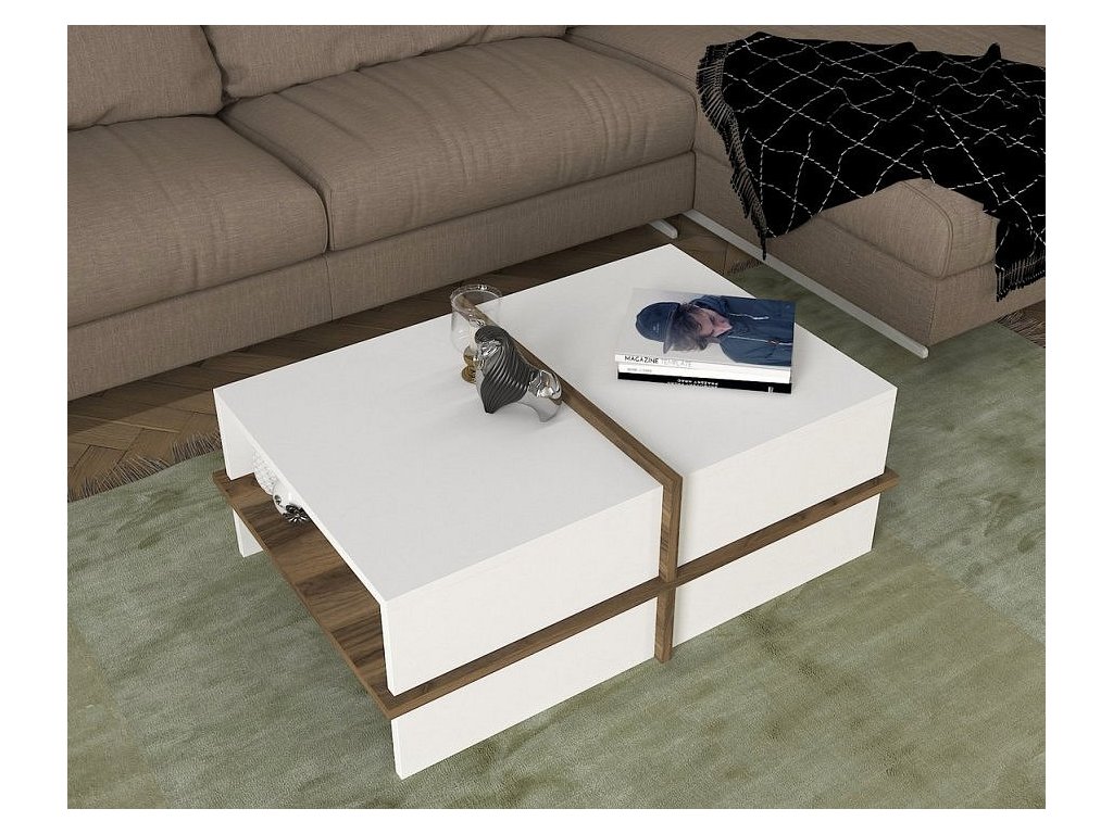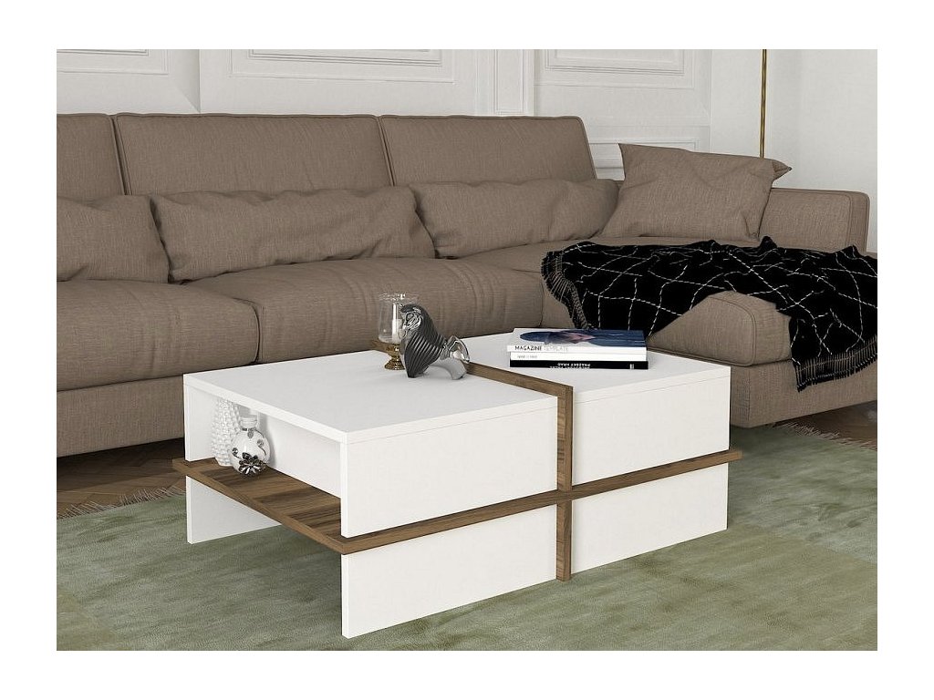 Konferenční stolek PUNO bílá/ořech