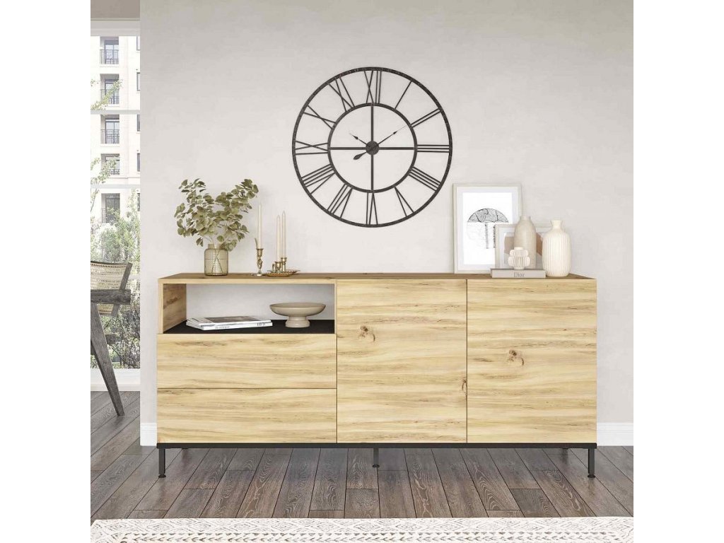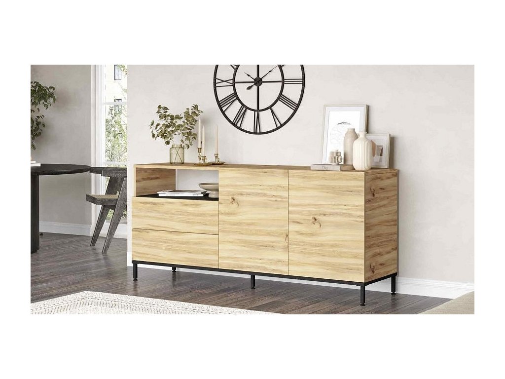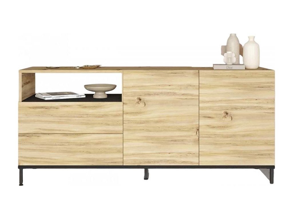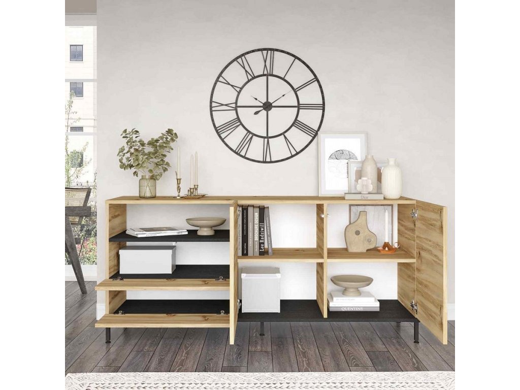 PONDER moderní komoda 4-dveřová, barva dub Left/černá