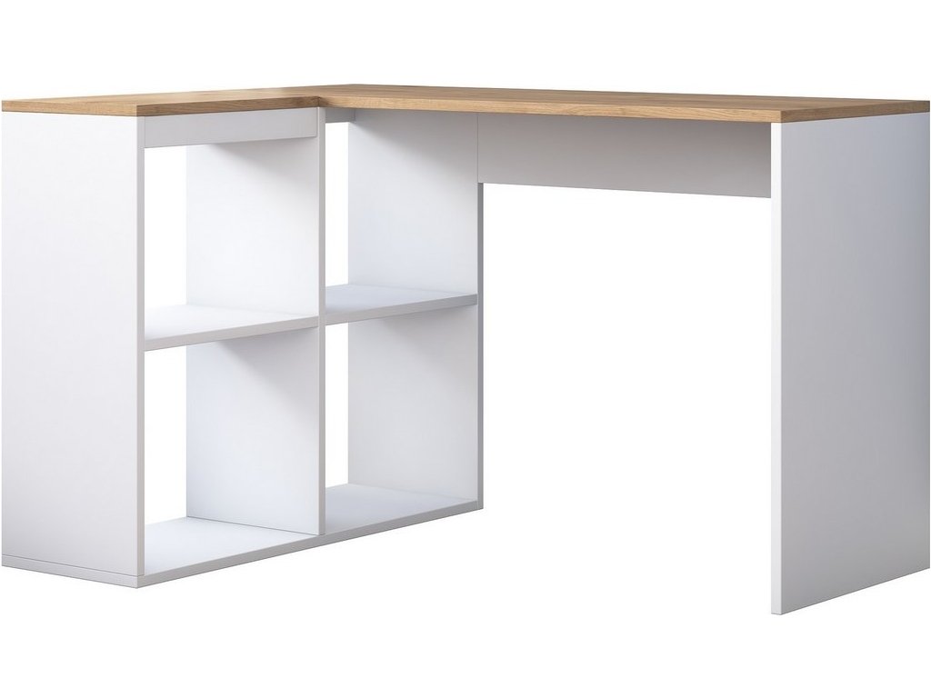 Moderní rohový pracovní stůl navržený pro efektivní práci i studium. Tento elegantní stůl je ideální pro dětský pokoj nebo kancelář či pracovnu, čímž přináší do každého interiéru stylový a čistý vzhled. Materiál je Melamin, VT laminát (18 mm). Barevné provedení je dub/bílá. Stůl nabízí 2 police pro praktické úložné místo. Kvalitní melaminový povrch zajišťuje snadnou údržbu a dlouhou životnost. Dodáváme v demontovaném stavu.