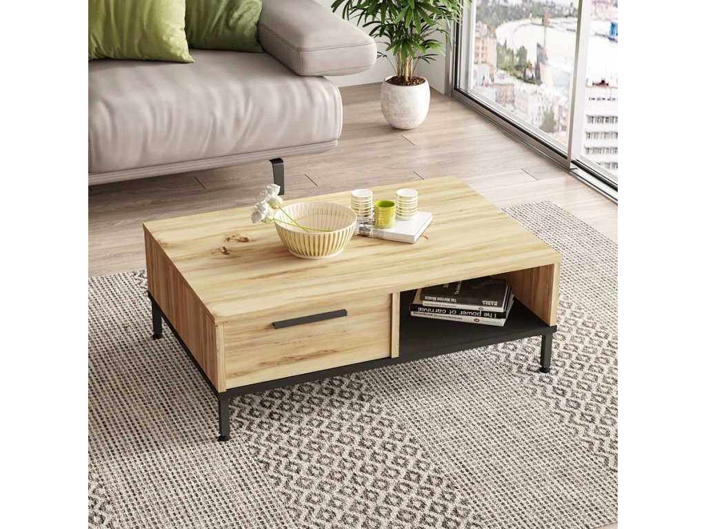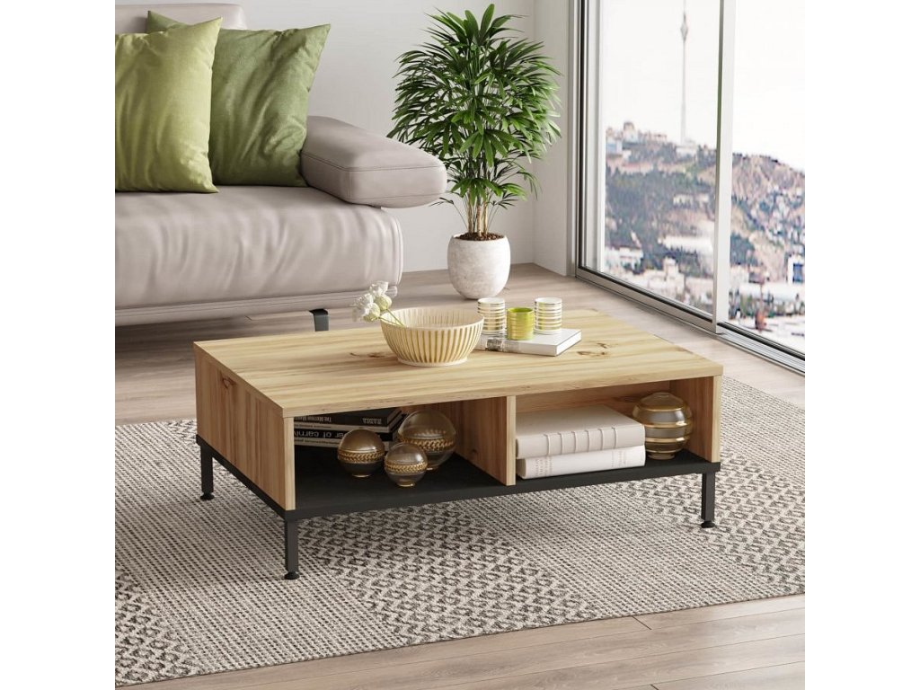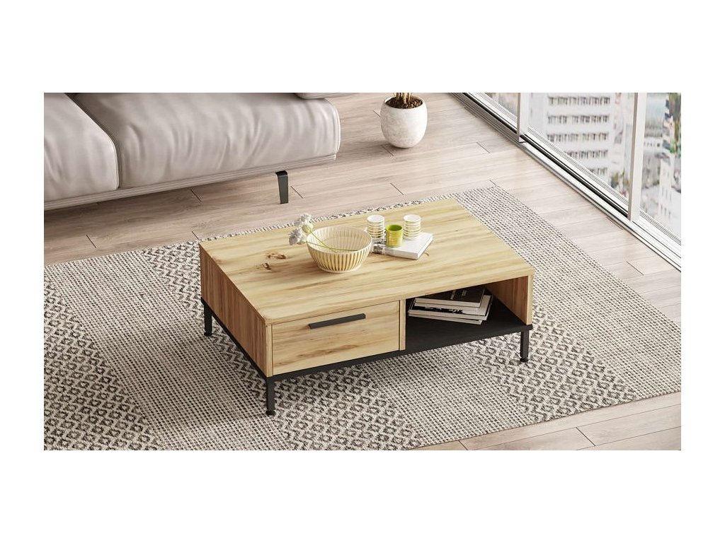 Potřebujete kousek nábytku, který kombinuje funkčnost s moderním designem? Seznamte se s tímto konferenčním stolkem. Tento konferenční stolek přináší do vašeho obývacího pokoje dokonalou harmonii mezi loftovým stylem a praktičností. Jeho kombinace barev dubu Left a černé dodává prostoru industriální charakter, zatímco materiály jako LTD a kov podtrhují jeho robustnost.