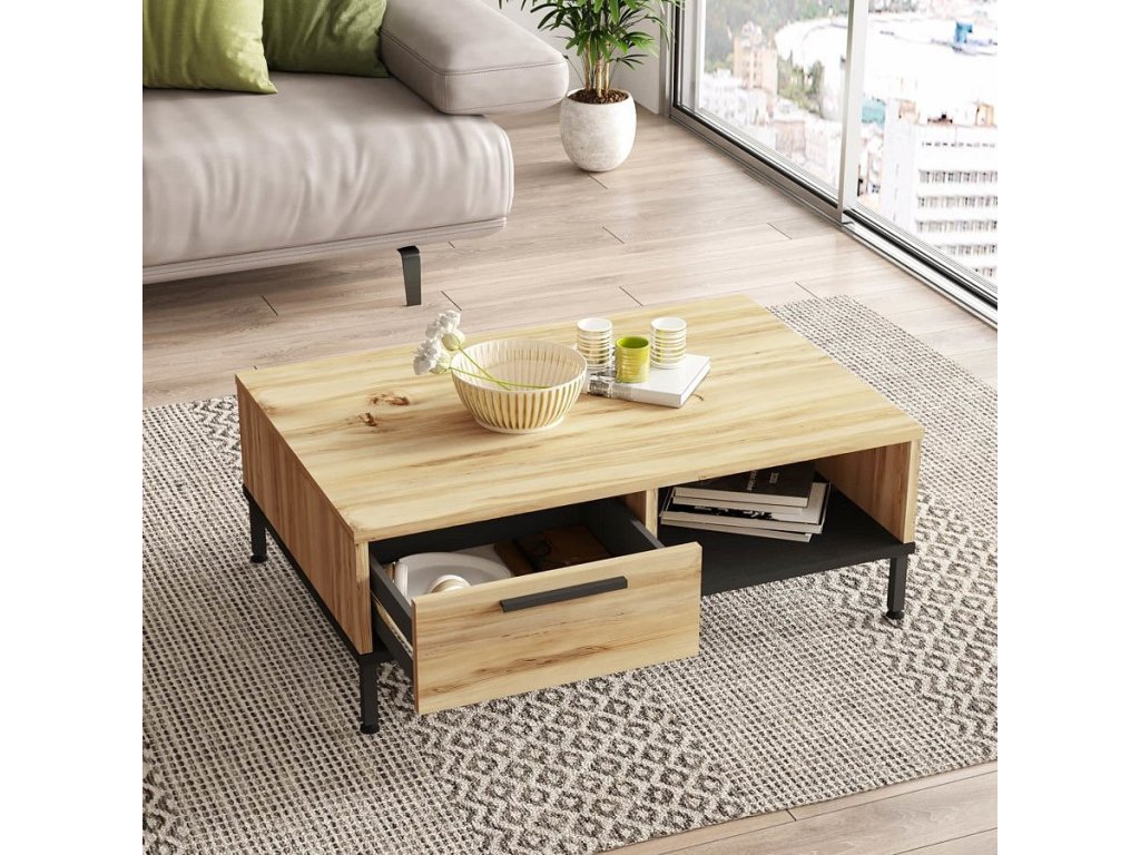 Stolek není jen stylovým doplňkem, ale také praktickým pomocníkem v každodenním životě. Jeho odkládací plochy a zásuvka nabízí dostatek místa pro vše, co potřebujete mít po ruce.