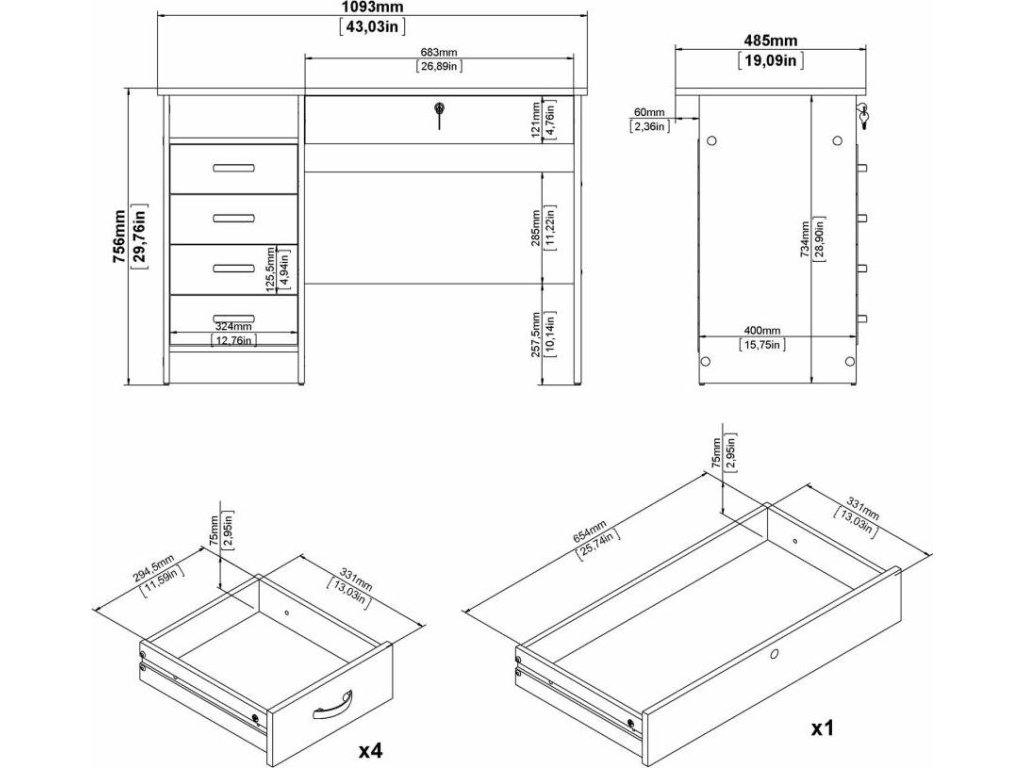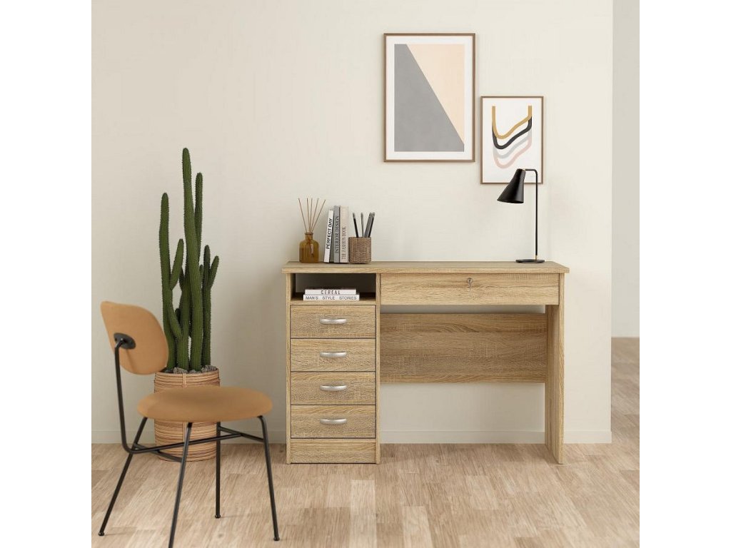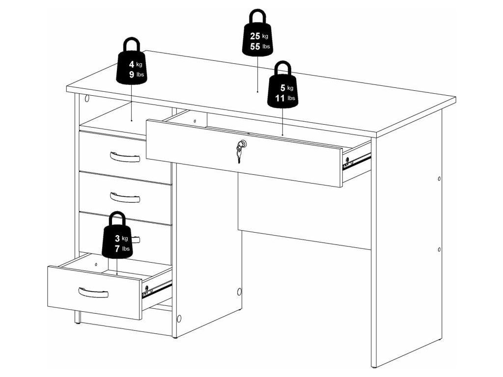 Psací stůl Felix je vhodný především do dětských a studentských pokojů, ale můžete s ním vybavit i kancelář, nebo domácí pracovnu. Psací stůl Felix poskytuje dostatek pracovního i úložného prostoru. Praktické zásuvky pojmou všechny nezbytné pomůcky a v případě potřeby je vždy budete mít po ruce. V případě umístění v kanceláři jistě oceníte uzamykatelnou zásuvku na důležité dokumenty, nebo osobní věci. Stůl je vyrobený z odolného lamina, které je odolné a snadné na údržbu. Psací stůl Felix je dodávaný v demontu a součástí je montážní plánek včetně všech potřebných spojovacích materiálů. Vyobrazené doplňky a dekorace nejsou v ceně stolu.