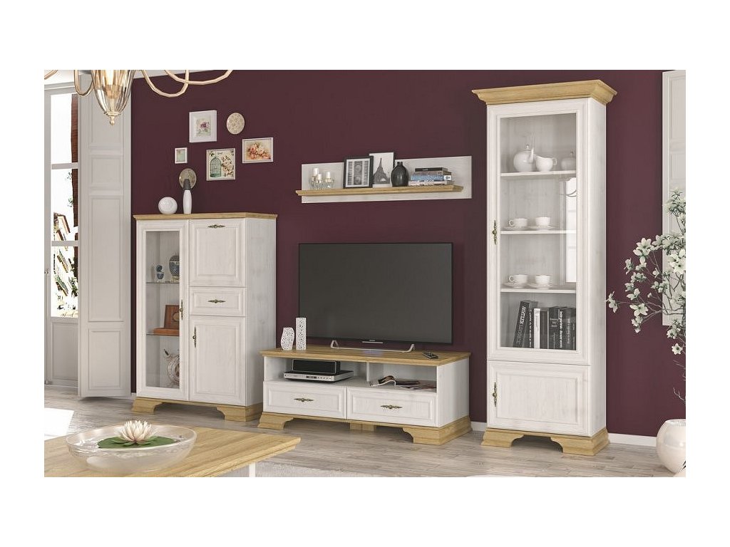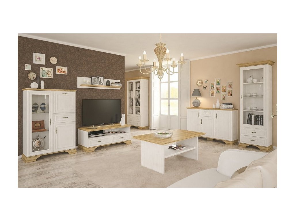 Vysoký regál s policemi ze sektorové řady nábytku v romantickém stylu. Nábytek je vyroben z kvalitní LTD v kombinaci s MDF v barevné kombinaci borovice andersen/zlatý dub. V naší nabídce najdete další jednotlivé prvky tohoto nábytku, ze kterého si můžete zařídit obývací pokoj dle vlastních potřeb. Dodáváme v demontovaném stavu.Doplňkové parametry