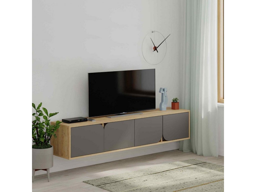 Objevte TV stolek - ideální řešení pro všechny, kteří hledají kombinaci funkčnosti a designu. Elegantní kombinace dubu a antracitu dodá vašemu obývacímu pokoji jedinečný vzhled.