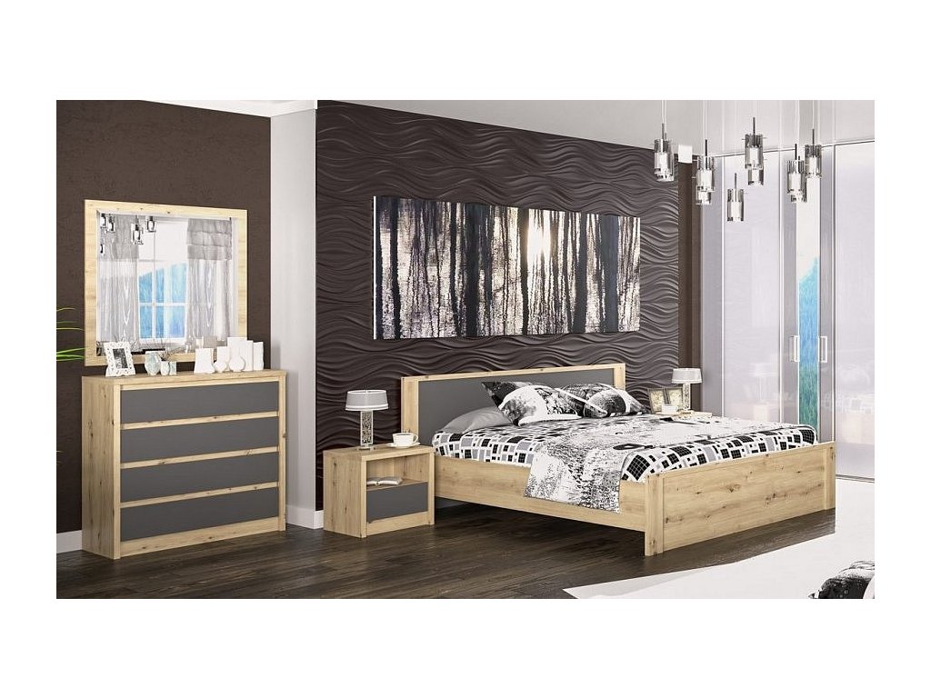 Sestava do ložnice ze sektorového nábytku. Barevné provedení dub artisan/šedý je zajímavé zachováním struktury dřeva. Bezúchytový systém podtrhuje jednoduchost, eleganci a moderní styl této řady. Nabídka komponentů této sektorové řady umožňuje sestavit si nábytek do ložnice dle vlastních představ. Sestava se skládá z (š/v/hl): postel 160 ( 184,8 x 85 x 204,3 cm), 2 kusy nočního stolku ( 46,4 x 45,6 x 39,3 cm ), komody se 4 zásuvkami (89 x 92 x 39,3 cm). Možnost dokoupení šatní skříně a zrcadla. V ceně není zahrnuta matrace ani rošt, možno dokoupit, vhodný rozměr 160 x 200 cm nebo 2 ks 80 x 200 cm. Vyrobeno z kvalitní LTD desky. Dodáváme v demontovaném stavu.Doplňkové parametry