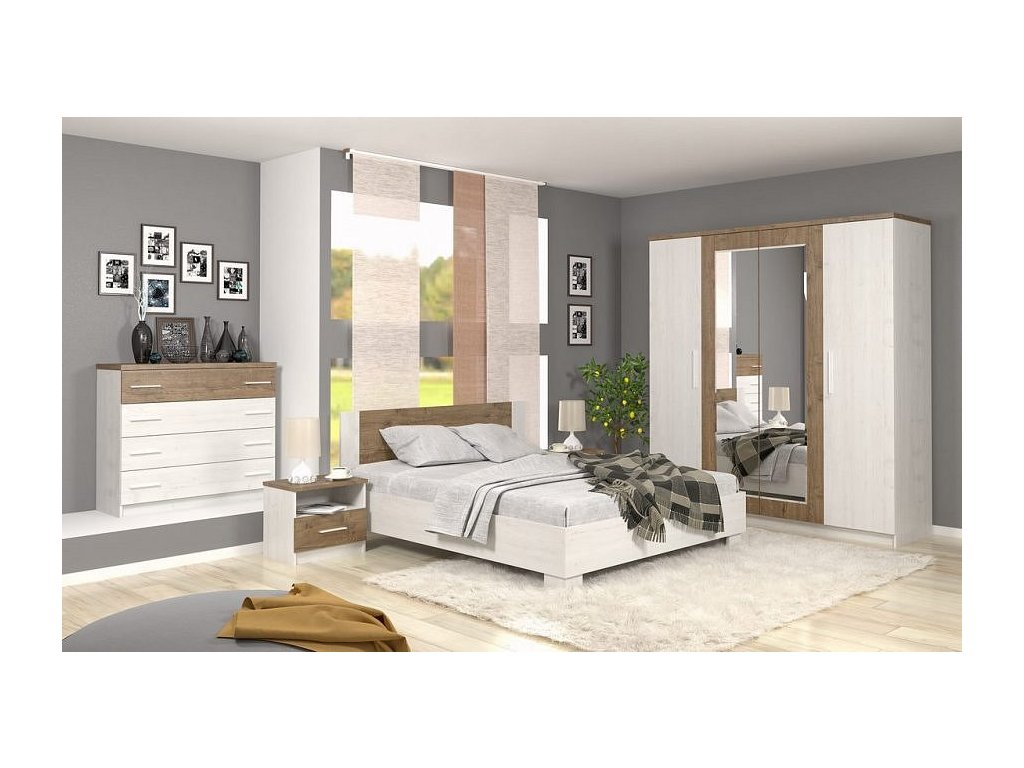 Sestava do ložnice ze sektorového nábytku v moderním provedení v jemných barvách dokonale doplní Váš interiér. Nábytek je vyroben z kvalitní LTD desky v barevné kombinaci borovice andersen/dub april. Nabídka komponentů této sektorové řady umožňuje sestavit si nábytek do ložnice nebo studentského pokoje dle vlastních představ. Sestava se skládá z (š/v/hl): postel (166,4 x 85,2 x 203,6 cm), 2 kusy nočního stolku (51 x 45,6 x 37,2 cm ), komody se 4 zásuvkami (102,8 x 92,2 x 40 cm) a šatní skříně čtyřdveřové se zrcadlem (200,8 x 214 x 58 cm). V ceně není zahrnuta rošt ani matrace, možno dokoupit, vhodný rozměr 160 x 200 cm nebo 2 ks 80 x 200 cm. Dodáváme v demontovaném stavu.Doplňkové parametry