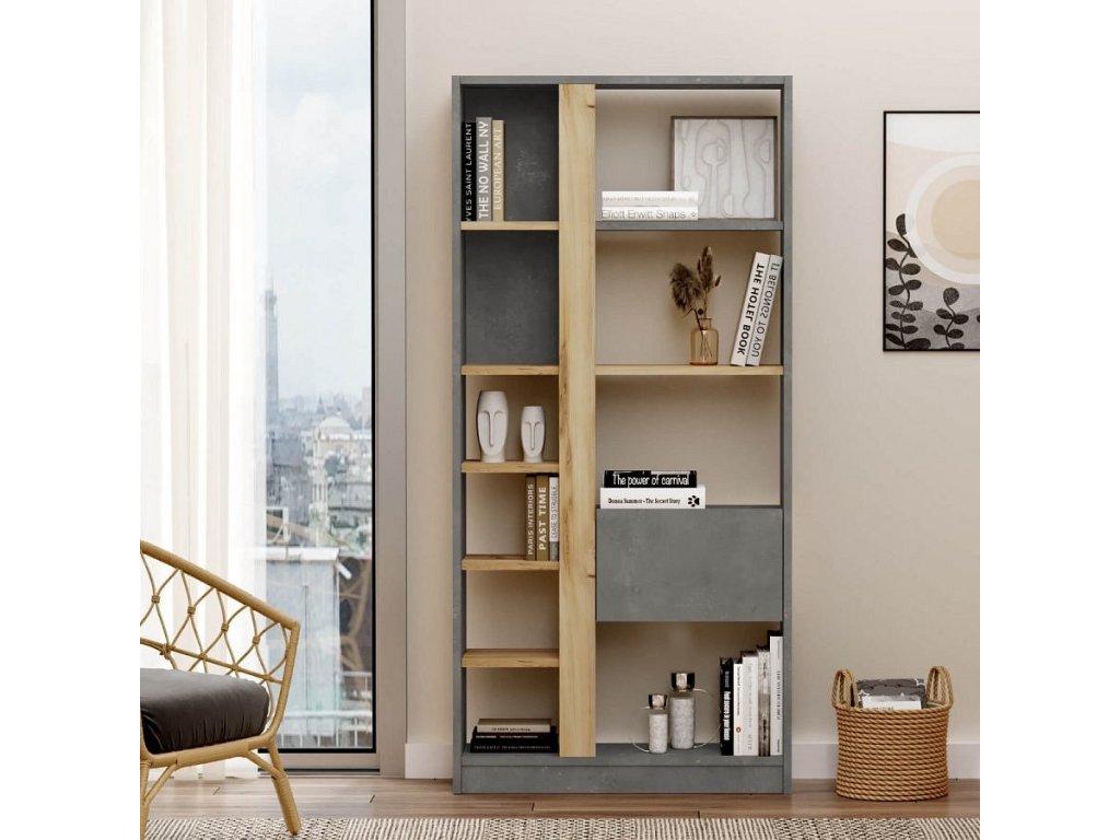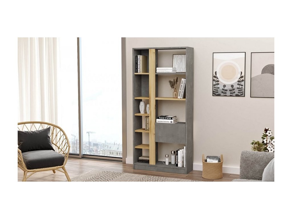 Tento regál je nejen krásným prvkem vašeho obývacího pokoje, ale také velmi praktickým úložným prostorem. Díky poličkám a plným dvířkům nabízí dostatek místa pro organizaci a skladování různých věcí. Díky svým rozměrům se vejde i do menších prostor a vytvoří moderní atmosféru ve vašem domově.