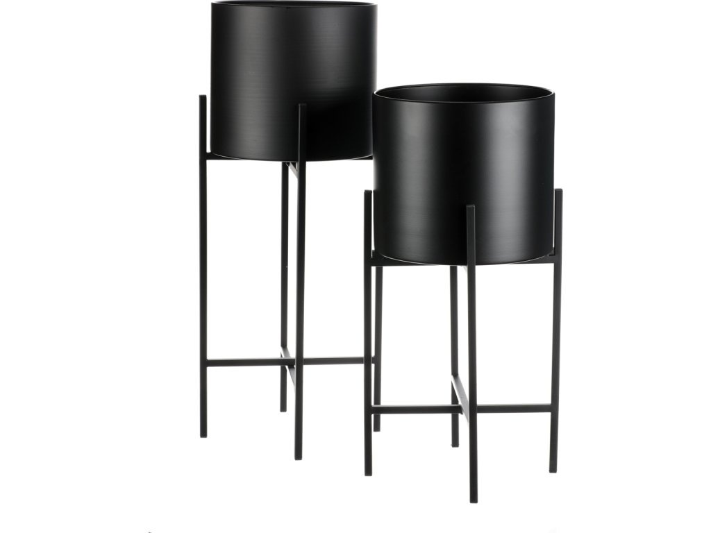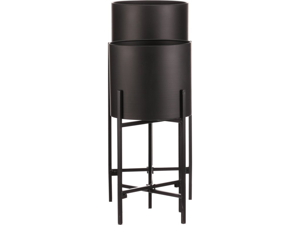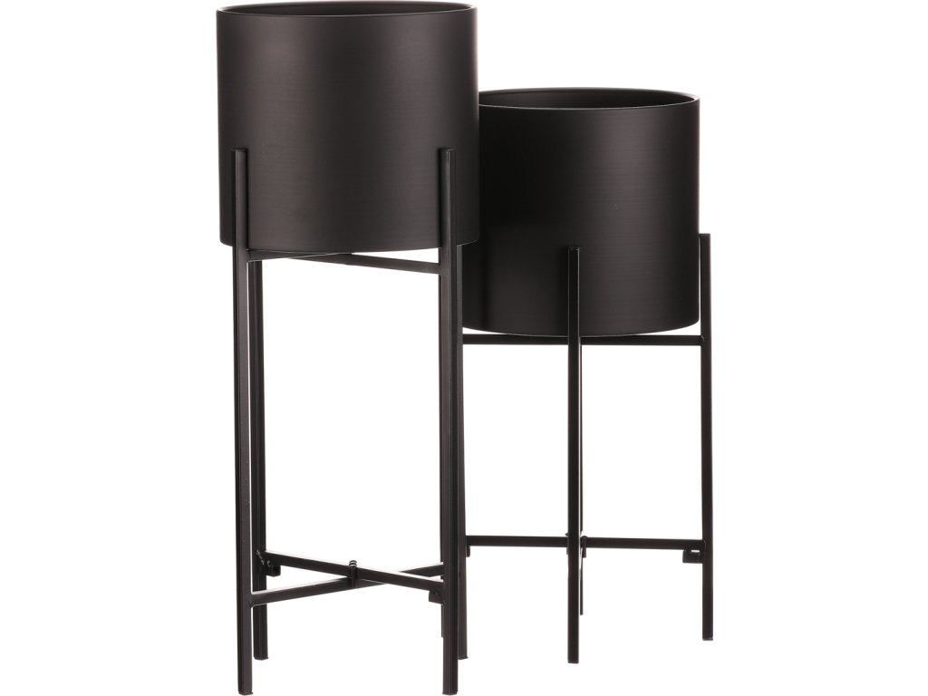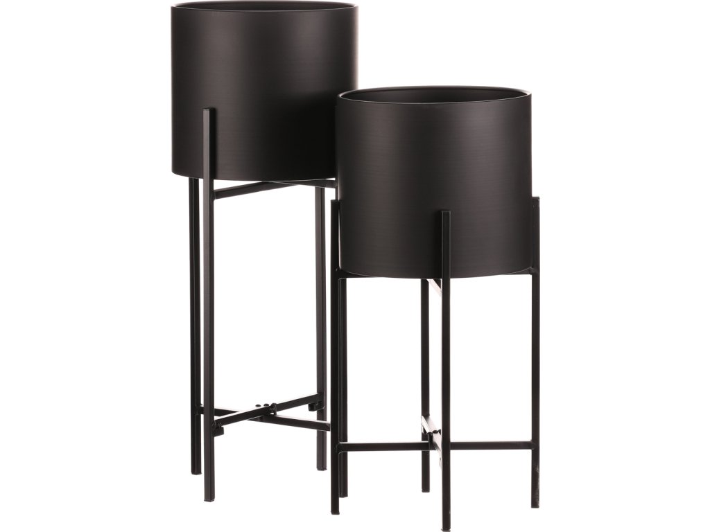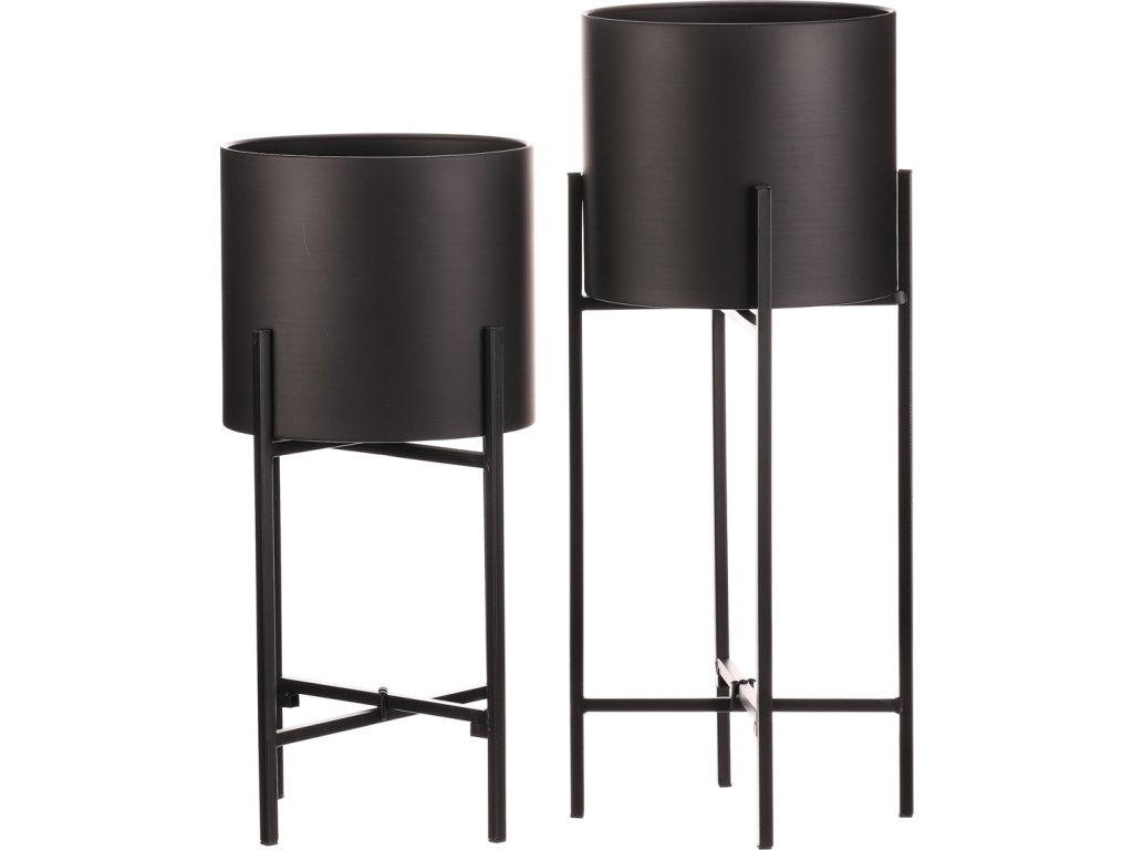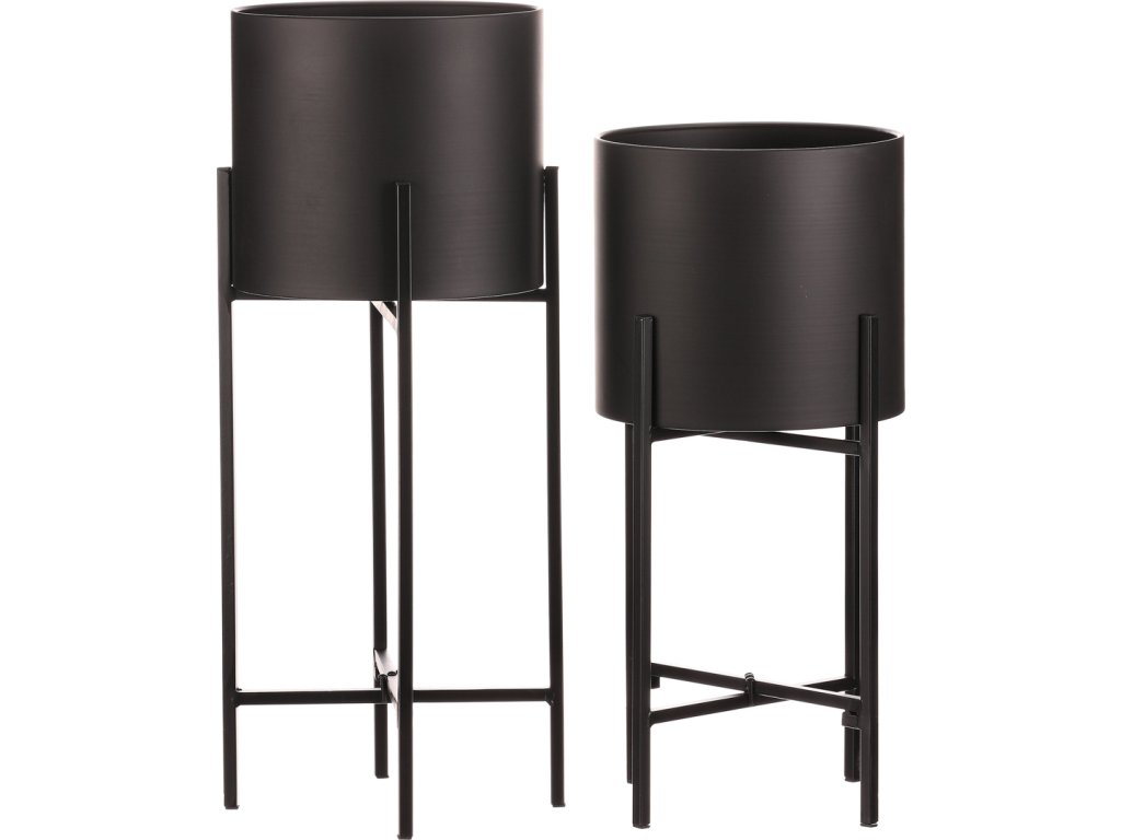 Set 2 ks kovových stojanů na květiny. interiérové provedení. Konstrukce a obal na květináč je kovový, v povrchové úpravě černý mat. Minimalistický design, industriální styl. Doporučujeme do obalu stojanu vkládat květinu již v květináči. Obal nemá odtokové otvory. Stojany jsou dodávány vcelku, není potřeba montáž.Doplňkové parametry