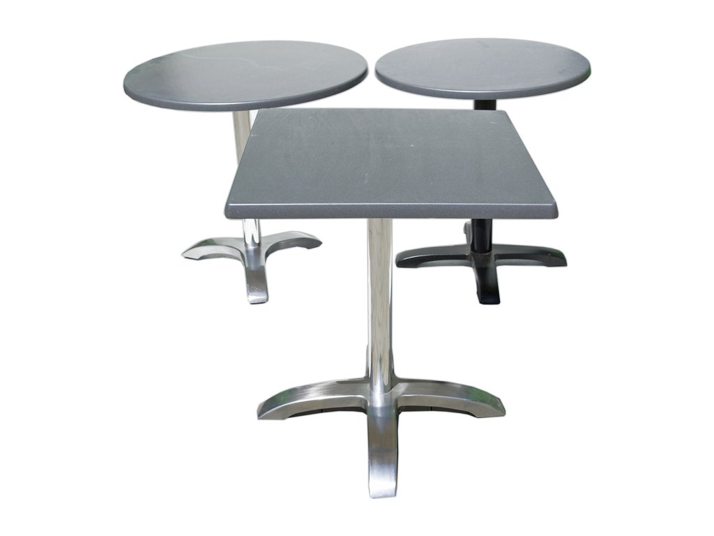 Povrch stolového plátu odolává povětrnostním vlivům, jsou vhodné pro venkovní použití, tvarově stabilní, robustní a vyznačují se dlouhou životností.