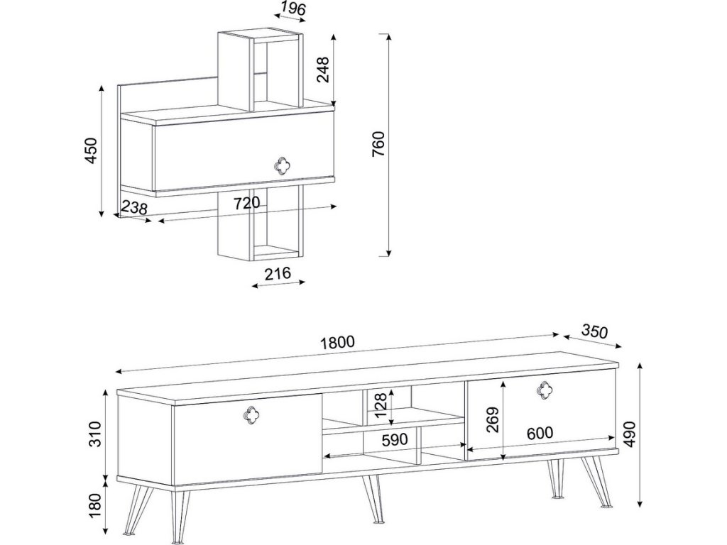Televizní stolek s výklopnými dvířky je vyroben z kvalitního lamina o tl.18 mm hraněné PVC páskou, odolného proti poškrábání v barevné kombinaci lydia/černá. Součástí balení je také závěsná skříňka o rozměrech (Š x V x H cm) 72 x 76 x 23,8 cm. Dodáváme v demontovaném stavu.Doplňkové parametry