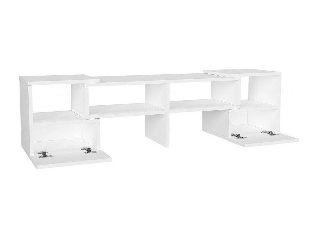 Televizní stolek se dvěma výklopnými dvířky je vyroben z kvalitního lamina o tl.18 mm hraněné PVC páskou, odolného proti poškrábání v barvě matná bílá. Díky pohyblivým bokům lze z něj vytvořit jak rovný, tak i rohový stolek. Dodáváme v demontovaném stavu.Doplňkové parametry