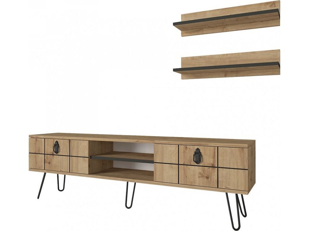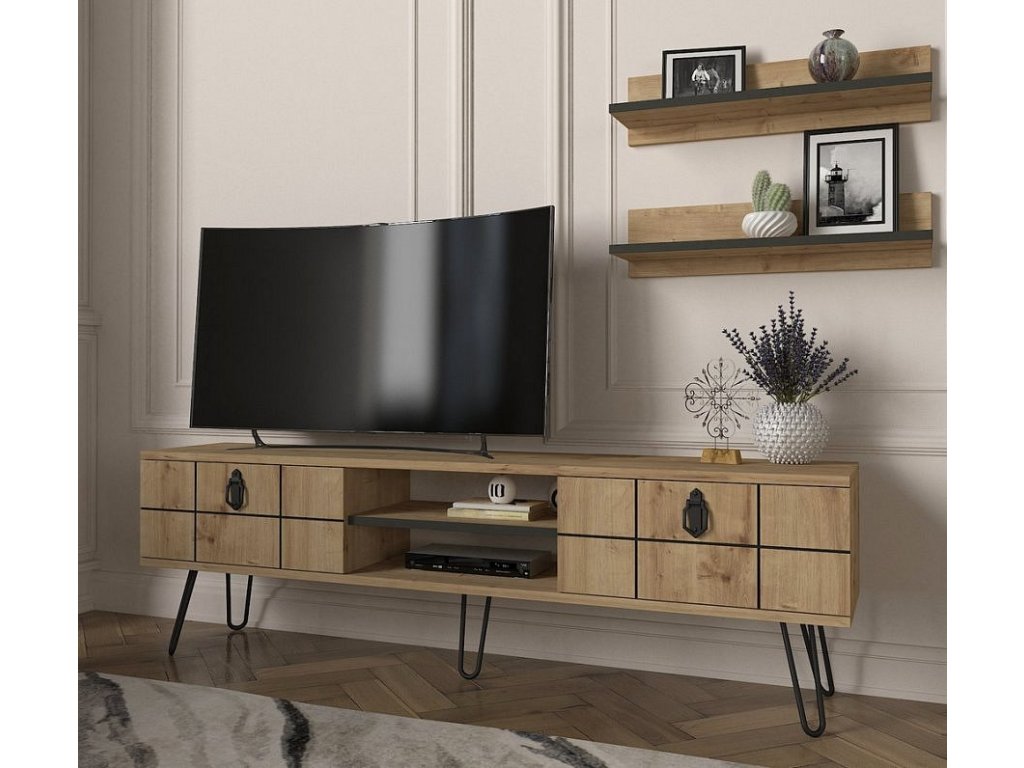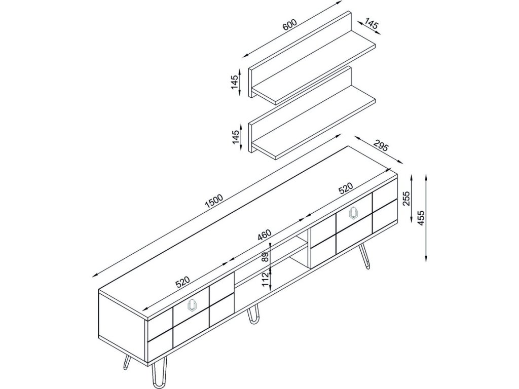 Televizní stolek s výklopnými dvířky je vyroben z kvalitního lamina o tl.18 mm hraněné PVC páskou, odolného proti poškrábání v barvě sapphire. Součástí balení jsou také dvě závěsné police o rozměrech (Š x V x H cm) 60 x 14,5 x 14,5 cm. Dodáváme v demontovaném stavu.Doplňkové parametry