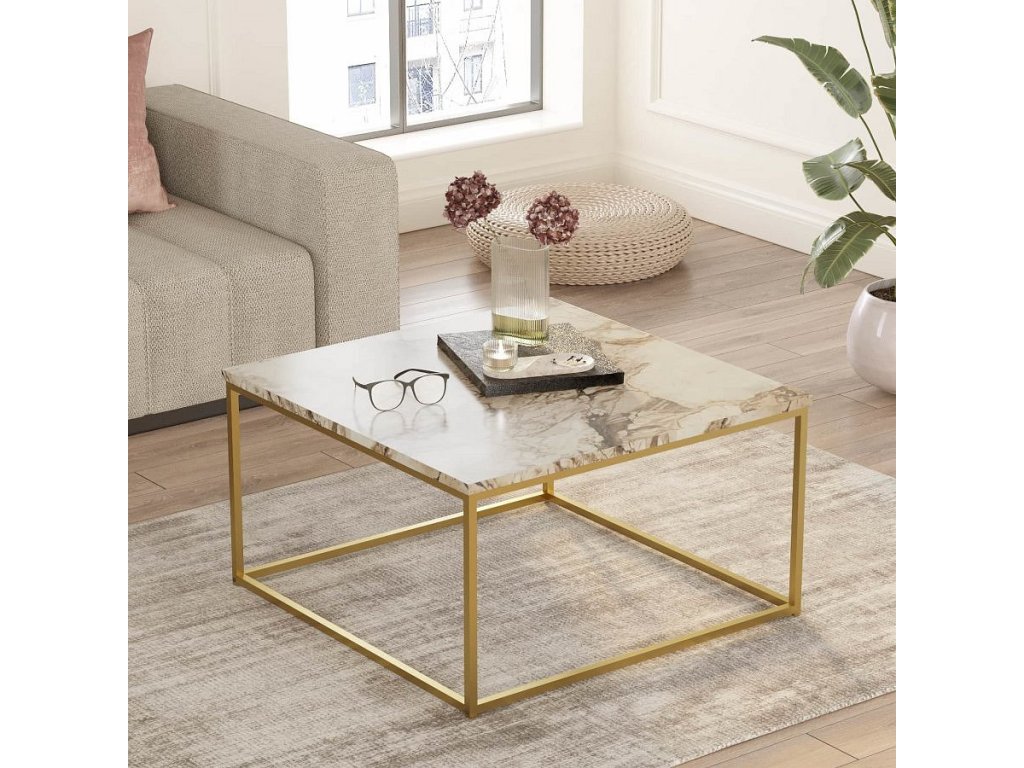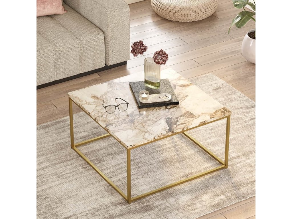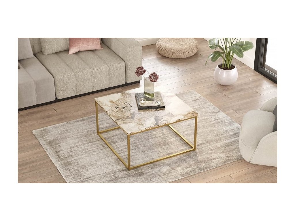 Oživte svůj obývací pokoj s konferenčním stolkem. Navržený v elegantním glamour stylu, tento stolek kombinuje luxusní mramorový povrch s detaily v zlaté barvě, což vytváří skvělý vizuální dojem.