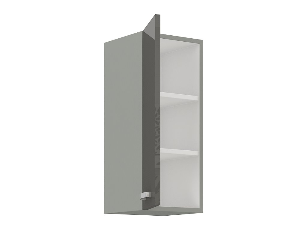 Horní skříňka jednodveřová GREY vyrobená z kvalitního lamina a MDF. Korpus je v barvě šedá a dvířka v barvě grey šedá v lesku. Rozměry skříňky - šířka 30 cm, výška 71,5 cm, hloubka 31 cm. Úchyty jsou z kovu. Dvířka mají levé otvírání. V naší nabídce naleznete další výběr skříněk k sestavení celé kuchyně.Doplňkové parametry