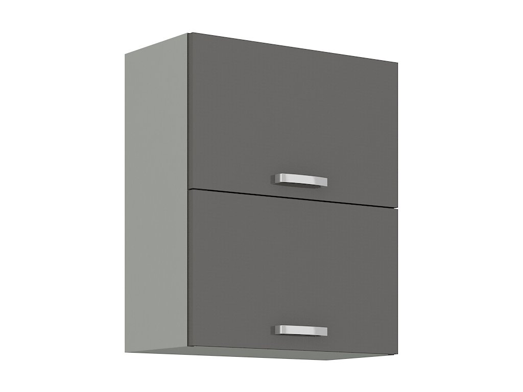 Horní výklopná skříňka dvojitá GREY vyrobená z kvalitního lamina a MDF. Korpus je v barvě šedá a dvířka v barvě grey šedá v lesku. Rozměry skříňky - šířka 60 cm, výška 71,5 cm, hloubka 31 cm. Úchyty jsou z kovu. Dvířka jsou pomocí plynových pístů otvíraná nahoru. V naší nabídce naleznete další výběr skříněk k sestavení celé kuchyně.Doplňkové parametry