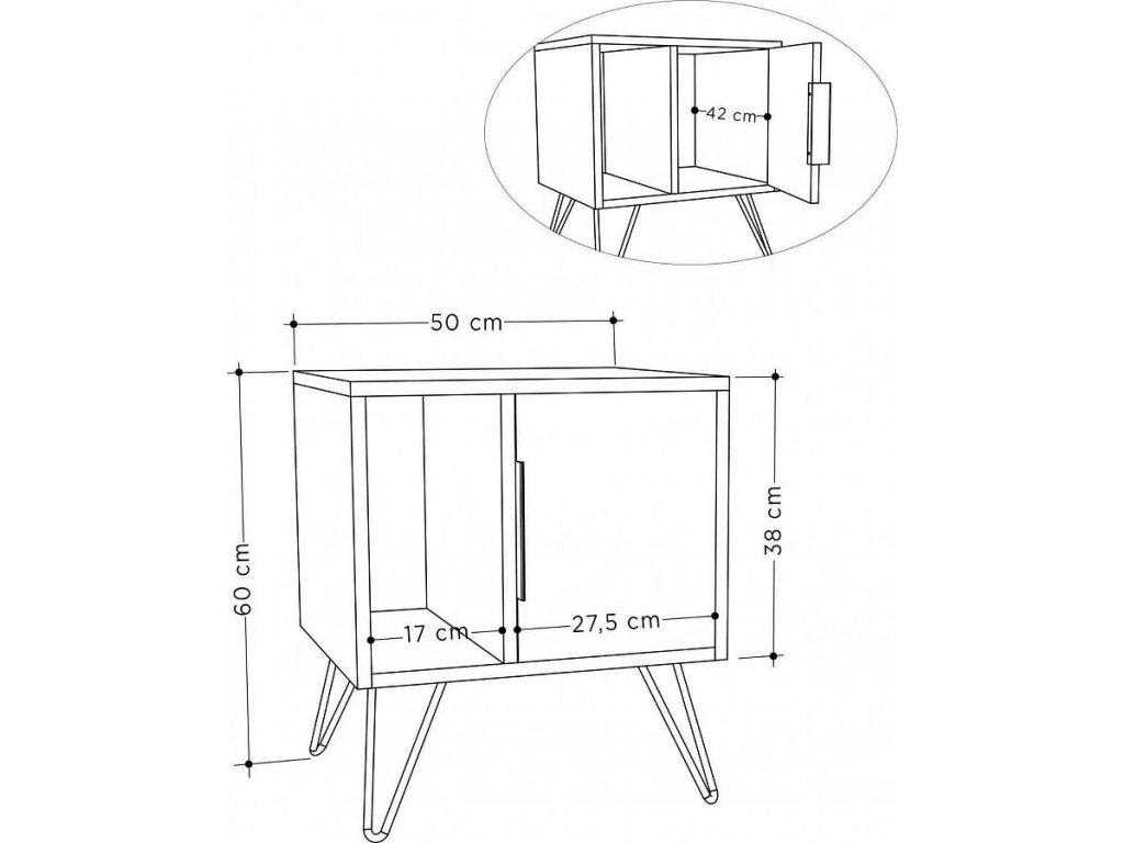 Díky skříňce s jedním dvířkem získáte dostatek úložného prostoru. Regálek je pak ideální pro uskladnění vašich oblíbených knih či drobných dekorací. Detaily z lesklého kovu dodávají stolečku výjimečný luxusní vzhled.