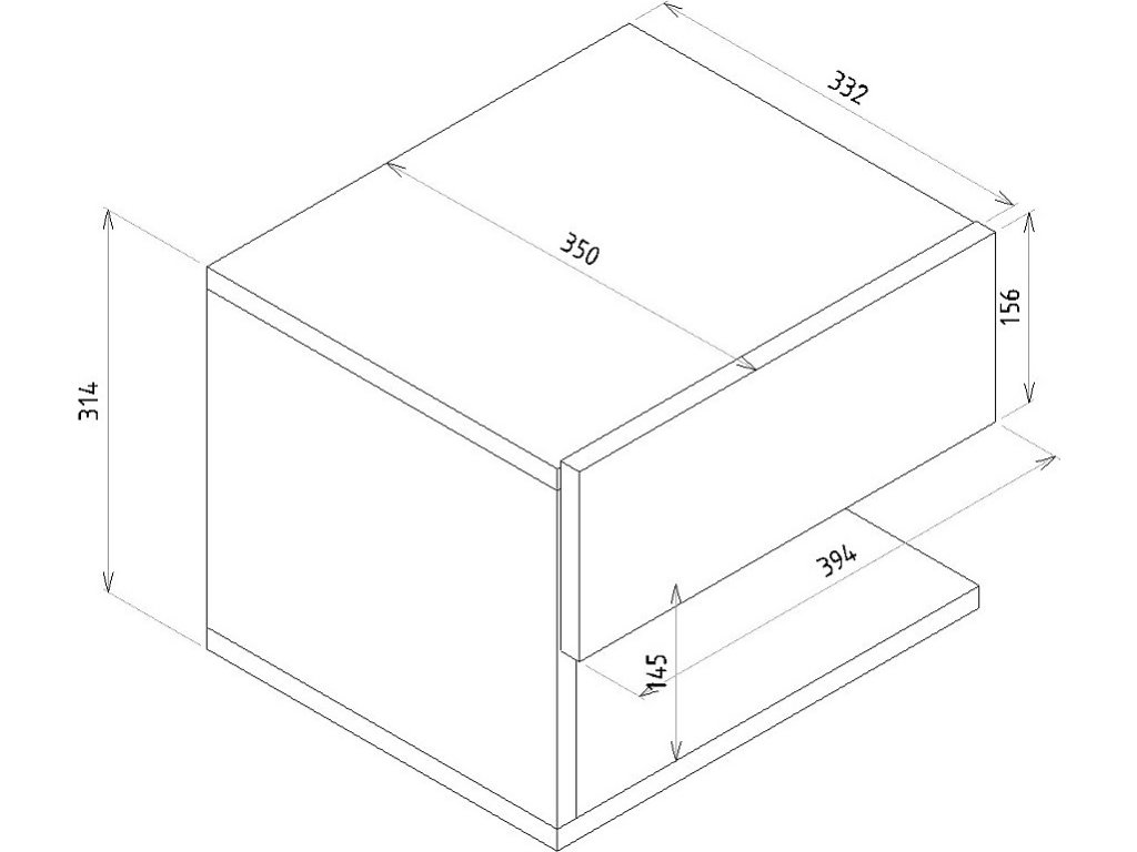 Závěsný noční stolek se zásuvkou a policí je vyroben z kvalitního lamina o tl.18 mm hraněné PVC páskou, odolného proti poškrábání v kombinaci barev sapphire/antracit. Dodáváme v demontovaném stavu.Doplňkové parametry