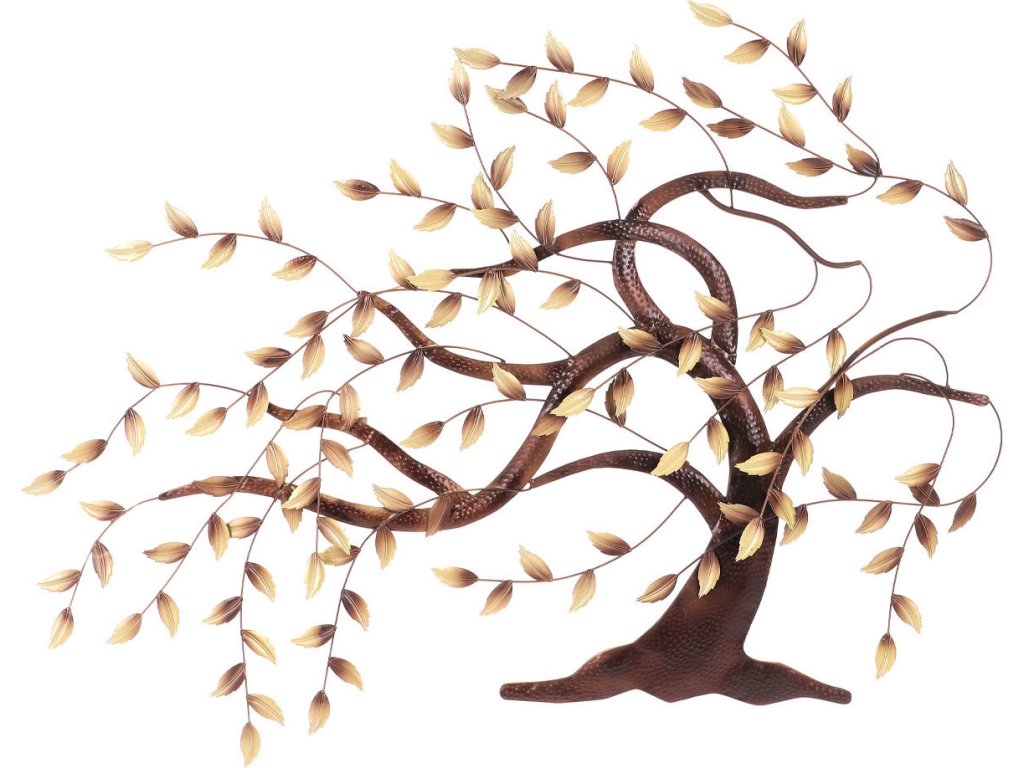 Strom kovový - nástěnná dekorace, špičaté lístky