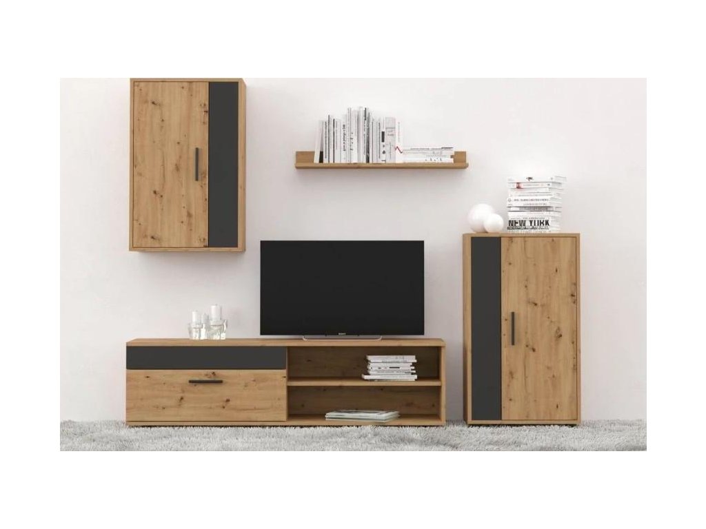 Představujeme obývací stěnu – dokonalou kombinaci funkčnosti a minimalistického designu. Navržena tak, aby povýšila váš obytný prostor svou elegantní estetikou a praktickými úložnými řešeními. Specifikace: Barevné provedení: dub artisan/černá. Perfektní pro současné interiéry, nabízející čistý a uklizený vzhled. Dostatečný úložný prostor. Odolná konstrukce je vyrobena z kvalitních LTD 16 a 22 mm. Jednoduchá montáž. Dodáváme v demontovaném stavu.Doplňkové parametry