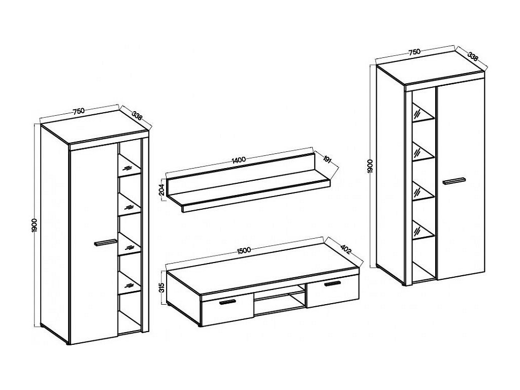 Obývací stěna Rizo patří mezi oblíbené modely moderního nábytku. Nabízí dostatek úložného prostoru a je vhodná i do menších pokojů. Stěna je vyrobena z lamina, které je odolné a snadné na údržbu. Ke stěně nabízíme i několik typů komod ve stejném provedení. Všechny prvky této sestavy jsou dodávány v demontu. Součástí je montážní plánek včetně všech potřebných spojovacích materiálů. Cena je uvedena za bytovou stěnu vyobrazenou na úvodní fotografii, bez komod, doplňků a dekorací. LED osvětlení není v ceně sestavy.