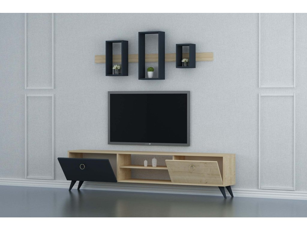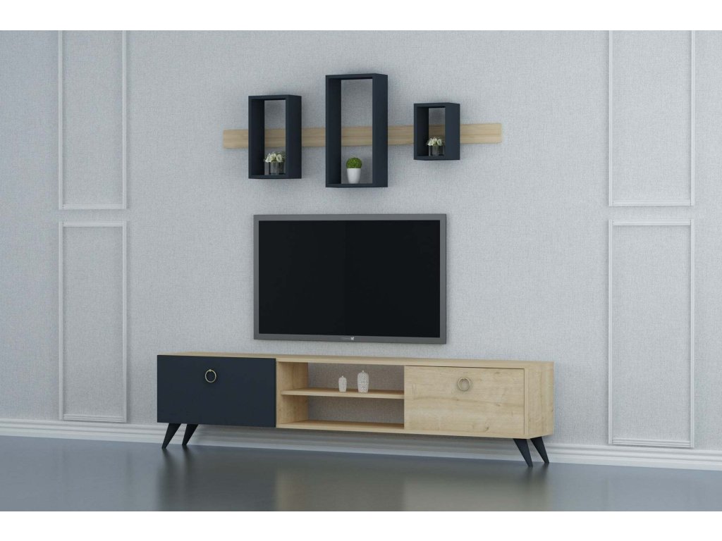 Obývací stěna přináší do vašeho interiéru styl a funkčnost. Tato elegantní sestava zahrnuje televizní stolek a nástěnnou polici, které společně tvoří harmonický celek. Kvalitní materiály a precizní zpracování zaručují dlouhou životnost a moderní vzhled vašeho obývacího pokoje.